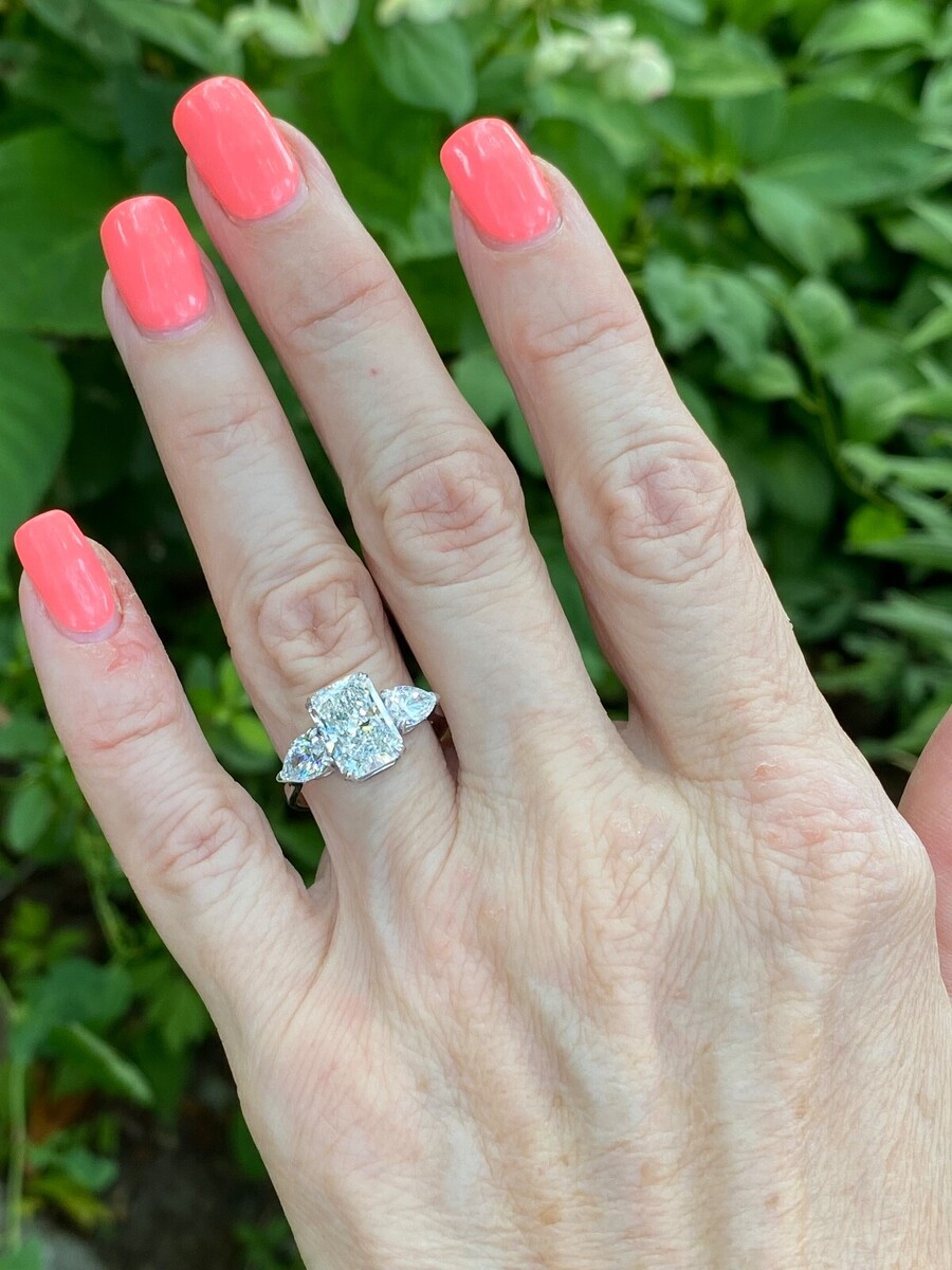 3 Stone Engagement Ring IGI 2.72Ct E-VS1 Lab Grown Radiant Cut Diamond 14k Gold