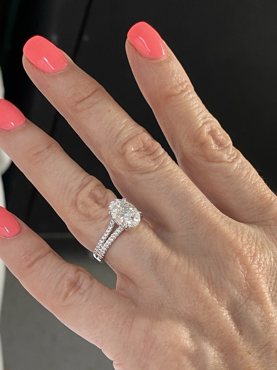 2.53 Ctw IGI Oval Cut D-VS1 Lab Grown Diamond Split Shank Engagement Ring 14k