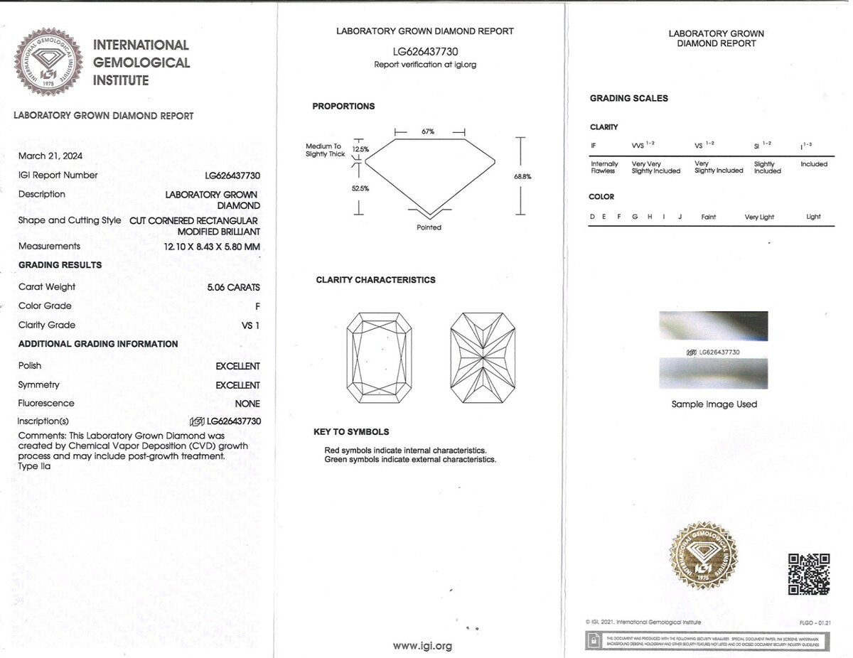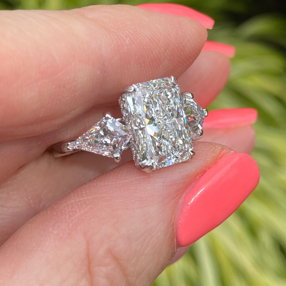 3 Pierre Igi 5.06 CT F-VS1 Radiant Coupe Labo Grown Anneau Fiancailles Diamant