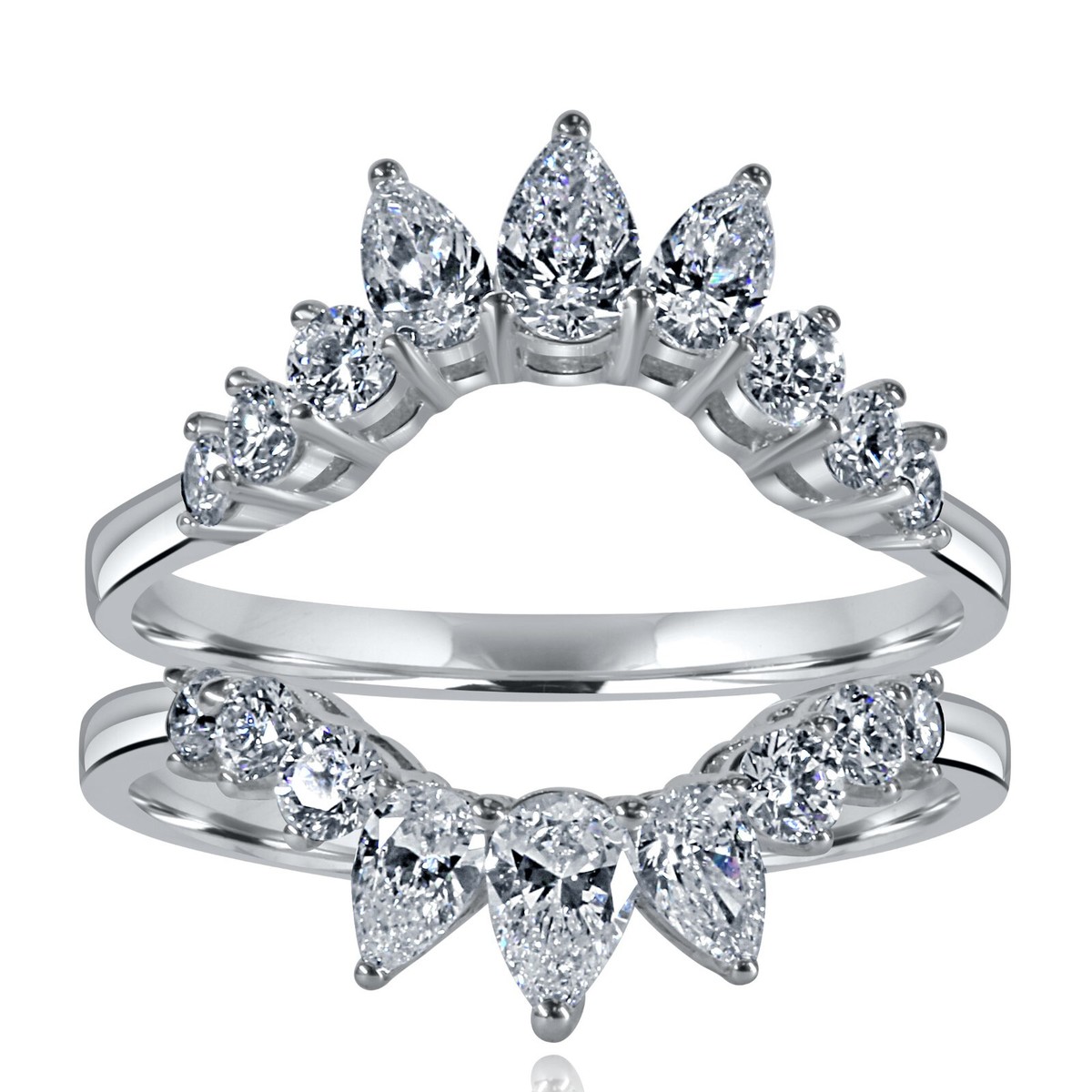 Verstarken Sie den herrlichen sparkle Ihres Verlobungsrings mit diesem wunderschonen Tiara-Schutzring mit 1,20 Karat birnenformigem und rund geschliffenem Labordiamant aus 14 Karat Weißgold.