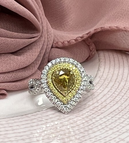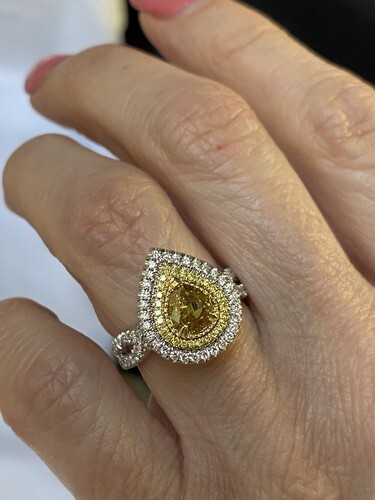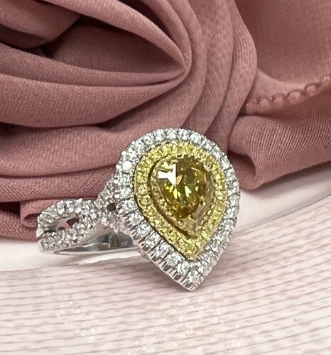 Bague En Diamant Poire Fancy Jaune Naturel Certifiee GIA 1,08CT En Or Blanc 18K