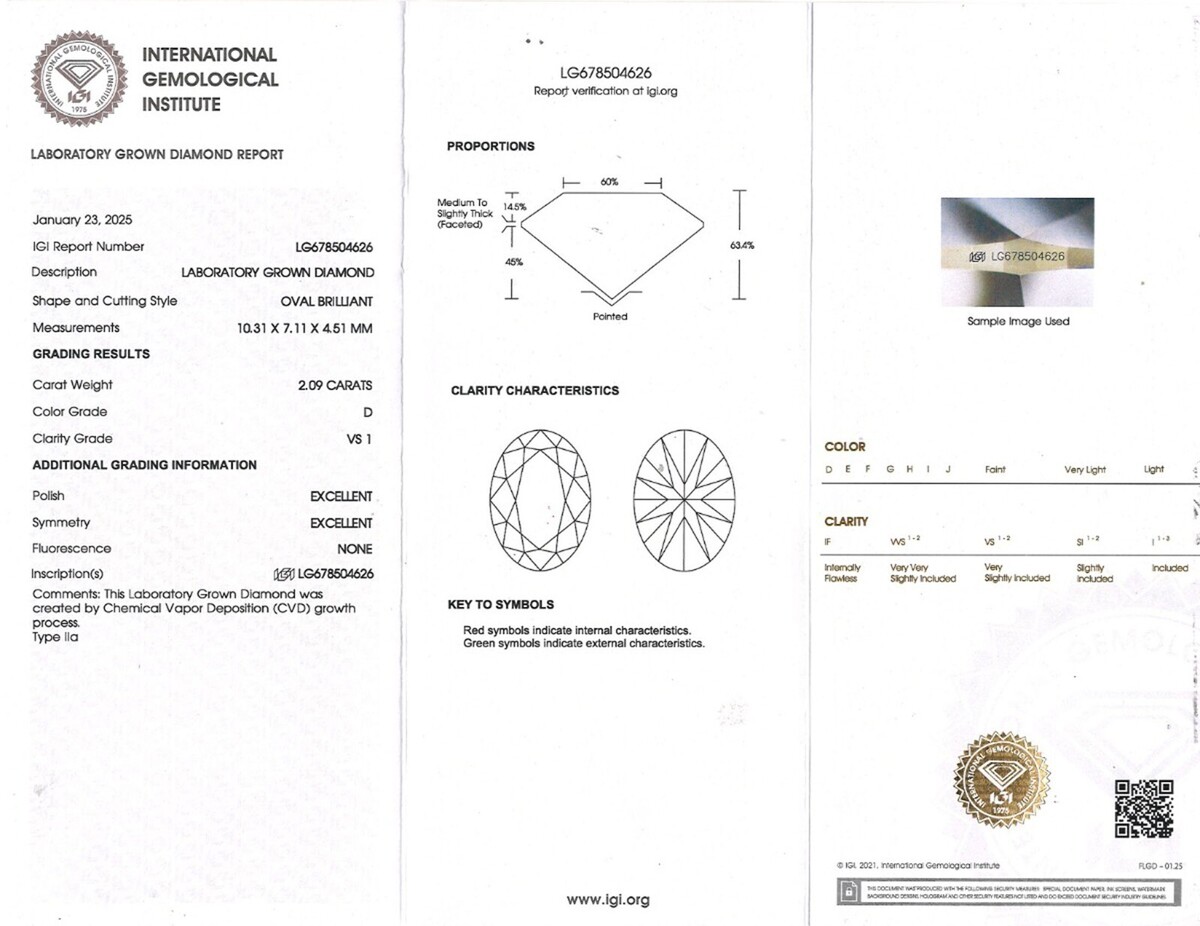Igi 3.29 TCW (2.09CT) Oval Brillantschliff Kunstdiamanten Grown Diamantring 14k