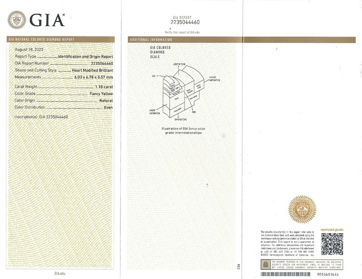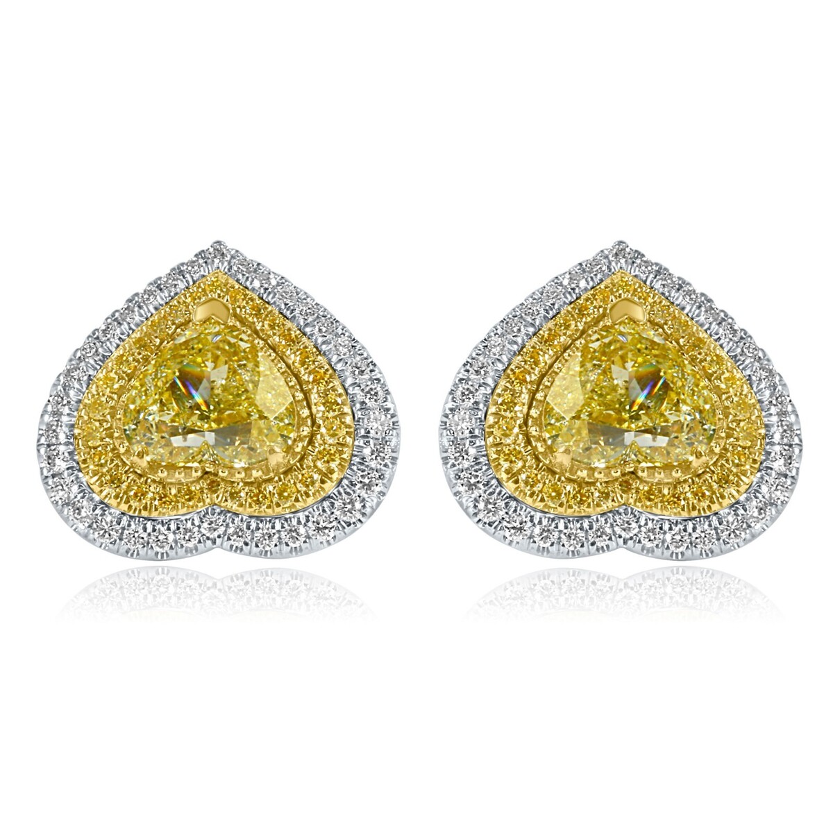 Erhohen Sie Ihre Eleganz mit unseren atemberaubenden Holzerohrringen mit GIA -zertifizierten Diamanten. Jeder Ohrring verfügt über einen faszinierenden 1 Karat und einen 1,10-Karat-Fancy Yellow Heart-Form-Diamanten, der von einem doppelten Halo aus gelben und farblosen runden Brillanten umarmt wird. Die exquisite Anordnung spielt in 18 Karat zweifarbigem Gold und verleiht jedem Anlass einen Hauch von Raffinesse. Machen Sie eine Erklarung mit diesen strahlenden Ohrringen ab, die außergewohnliche Handwerkskunst mit zeitloser Schonheit verbinden. Das Gesamtkarat -Gewicht betragt 2,70 Karat. Unsere Produkte sind alle von Qualitat und Pflege im Herzen des Diamond District in der 47th Street in New York City hergestellt. Unser Engagement und unser Engagement für eine gute Arbeit und Qualitat übe