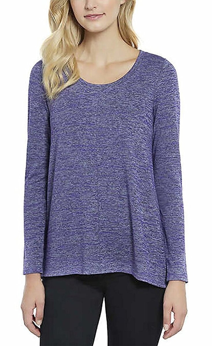Jones New York Womens Long Sleeve Scoop Neck Shirt Melange Knit Stretch Fabric
