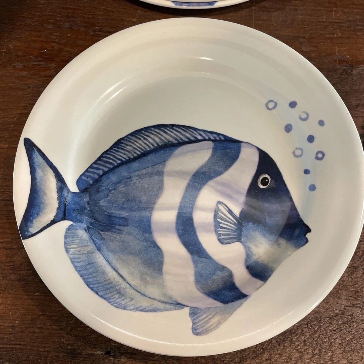 PIER 1 Set Of 4 Melamine Salad Appetizer Plates Nautical Blue Ocean Fish Theme