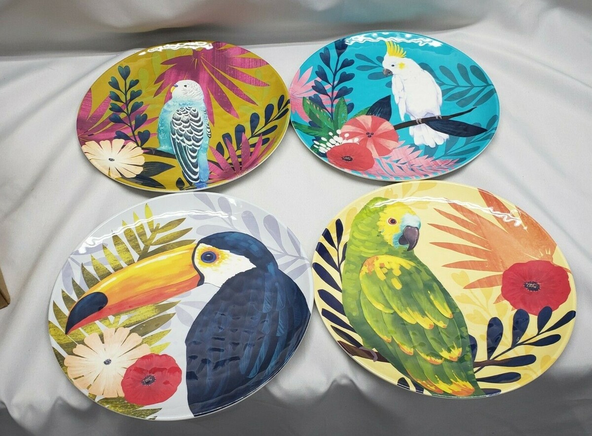 PIER 1 TROPICAL BIRD PARROT/TOUCAN/COCKATOO/BUDGIE MELAMINE ACCENT PLATES 9" NEW