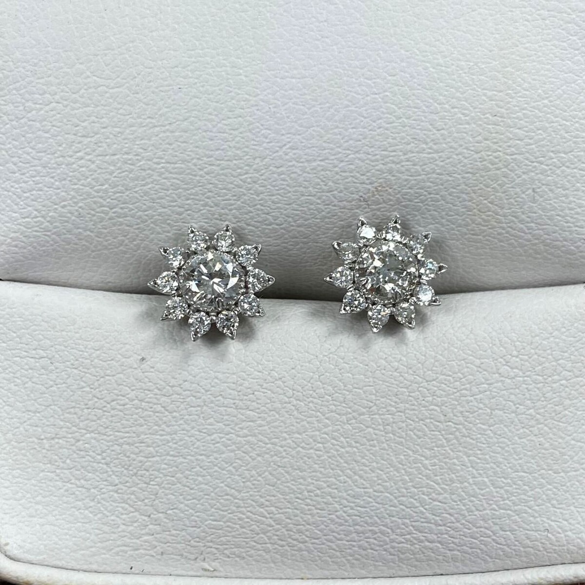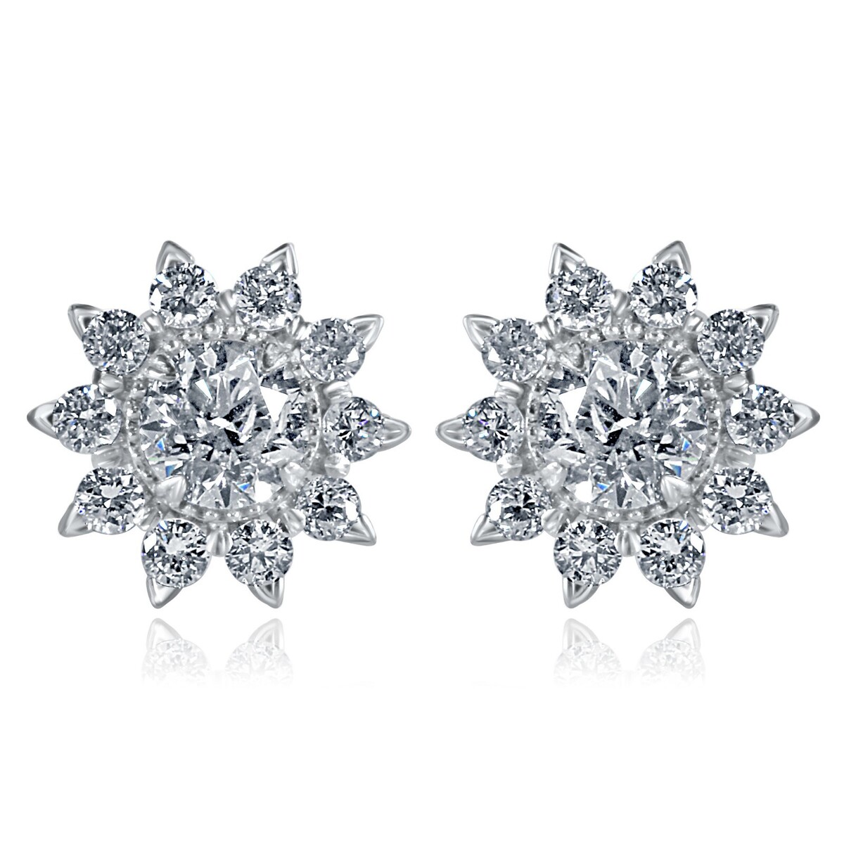 1.05 CT Naturel Diamant Rond Sunburst Boucles D'Oreilles 14k or Blanc