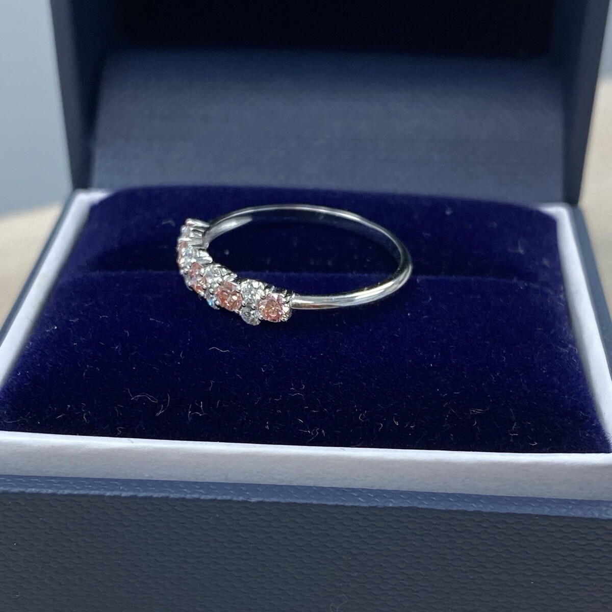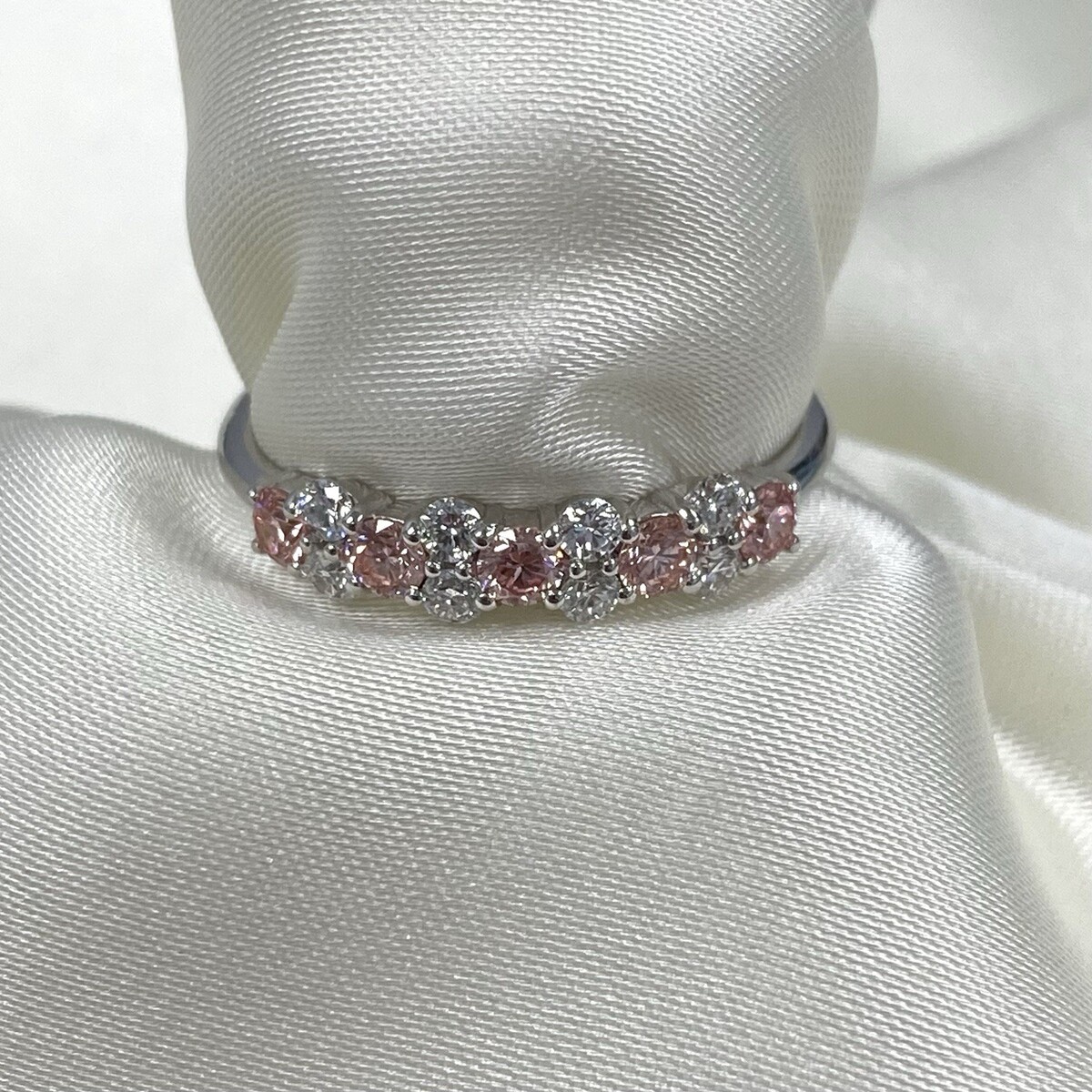 Alliance en diamants alternes cultives en laboratoire rose et blanc de 0,50 ct en or blanc 14 carats