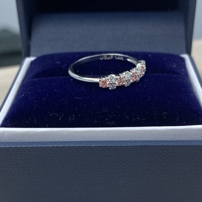 Veritable symbole d'elegance et de romantisme, cette alliance a couper le souffle de 0,50 carat presente un design alterne unique : un diamant taille ronde fantaisie rose intense suivi de deux diamants taille ronde blanc brillant. Fabriquee de main de maître en or 14 carats, cette piece exquise allie beaute intemporelle et sophistication contemporaine, ce qui en fait une representation parfaite de votre amour eternel.