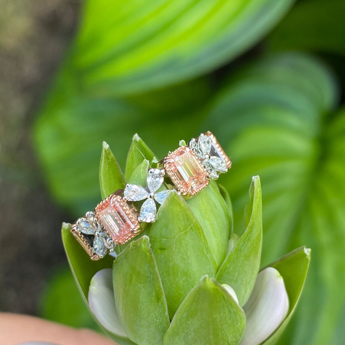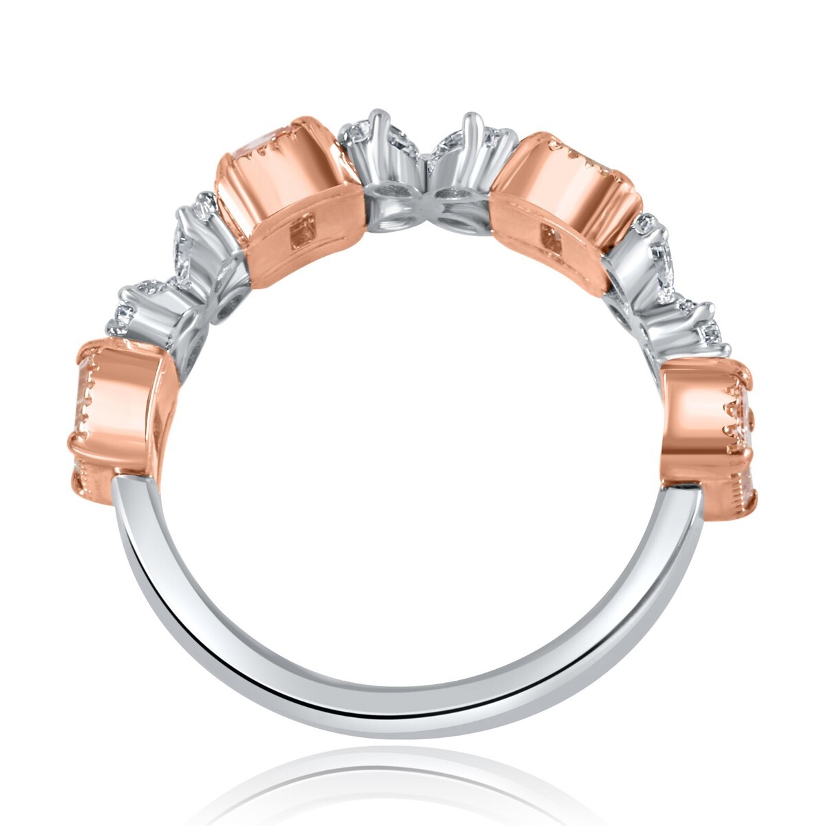 Dieser exquisite Ehering verfügt über ein atemberaubendes, abwechselndes Design mit vier ausgefallenen, intensiv rosafarbenen, im Labor gezüchteten Diamanten im Smaragdschliff und farblosen, tropfenformigen Diamanten, die in eleganten Vierergruppen eingefasst sind. Dieser aus einer harmonischen Mischung aus 14-karatigem Weiß- und Rosegold gefertigte Ring eignet sich perfekt als Ehering oder als bedeutungsvolles Jubilaumsgeschenk und symbolisiert Ihre Liebe mit zeitloser Schonheit und einzigartigem Stil. Das Gesamtkaratgewicht betragt 2,30 Karat.