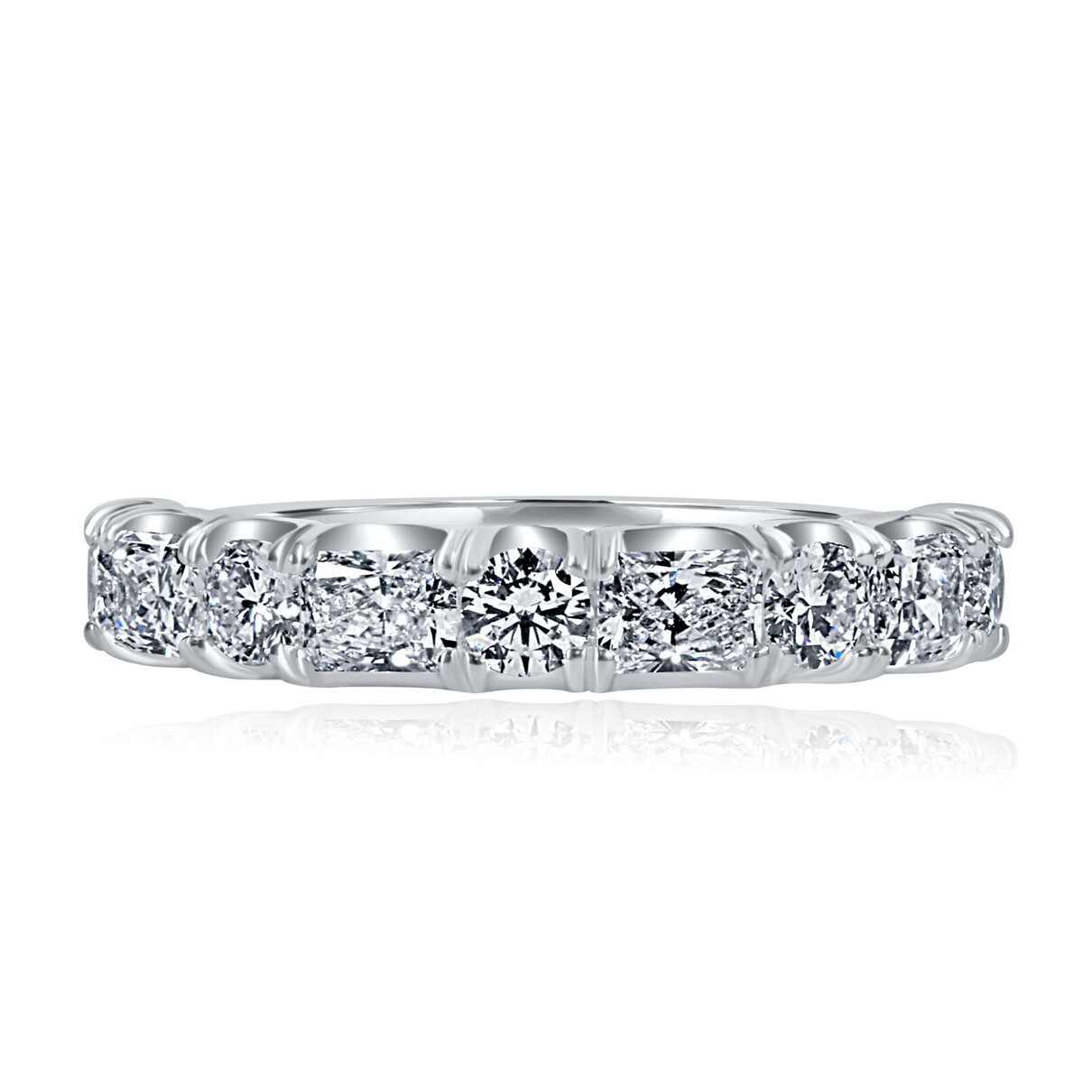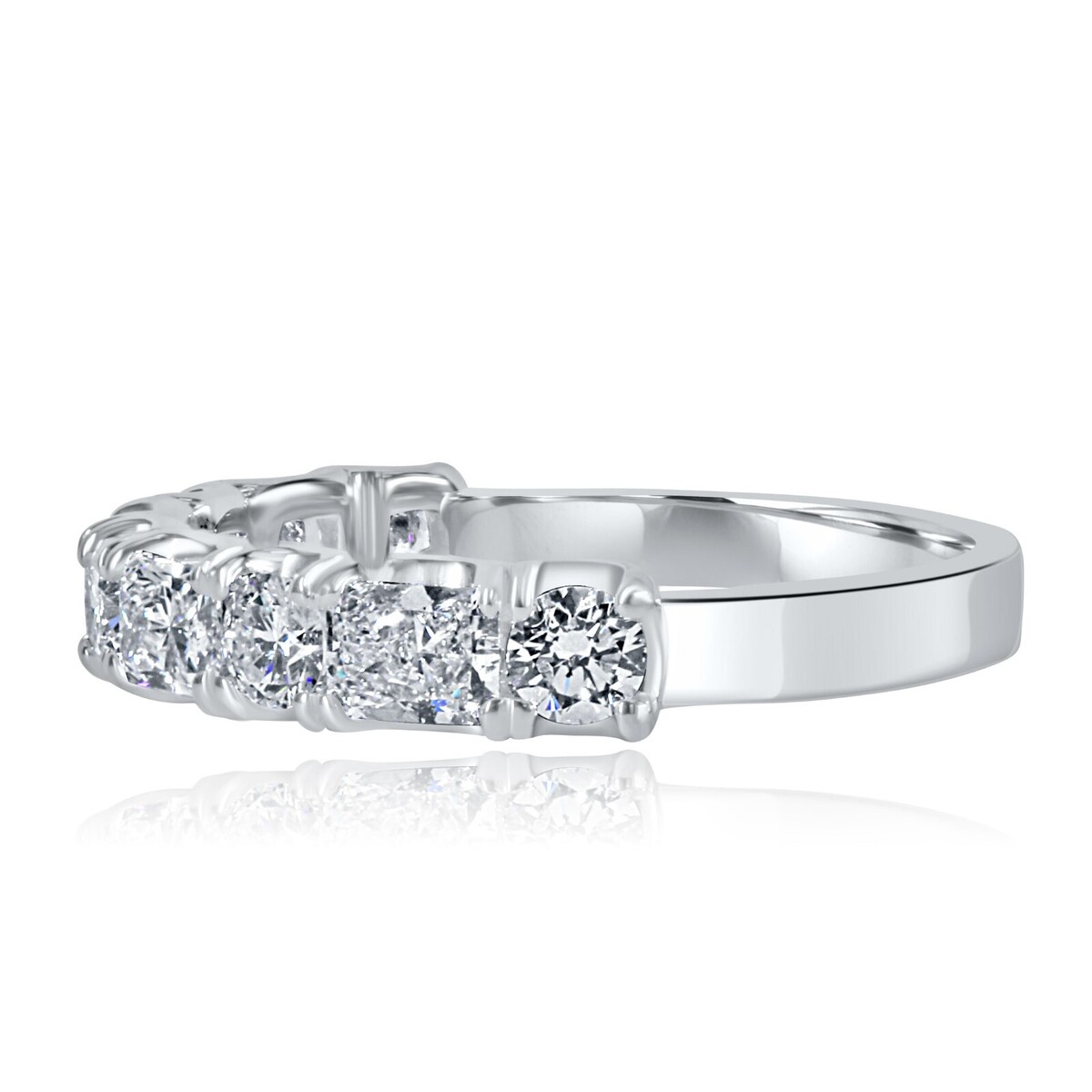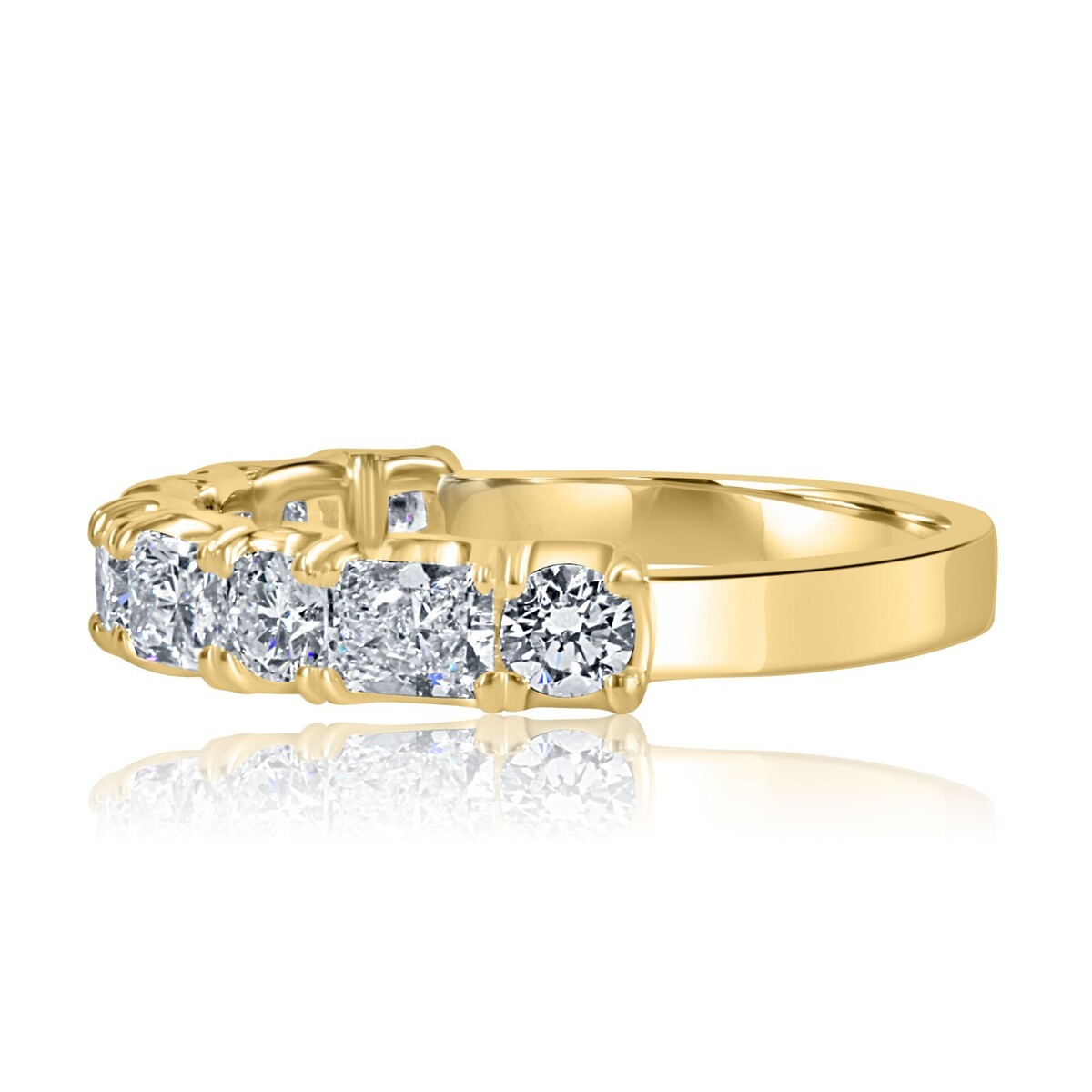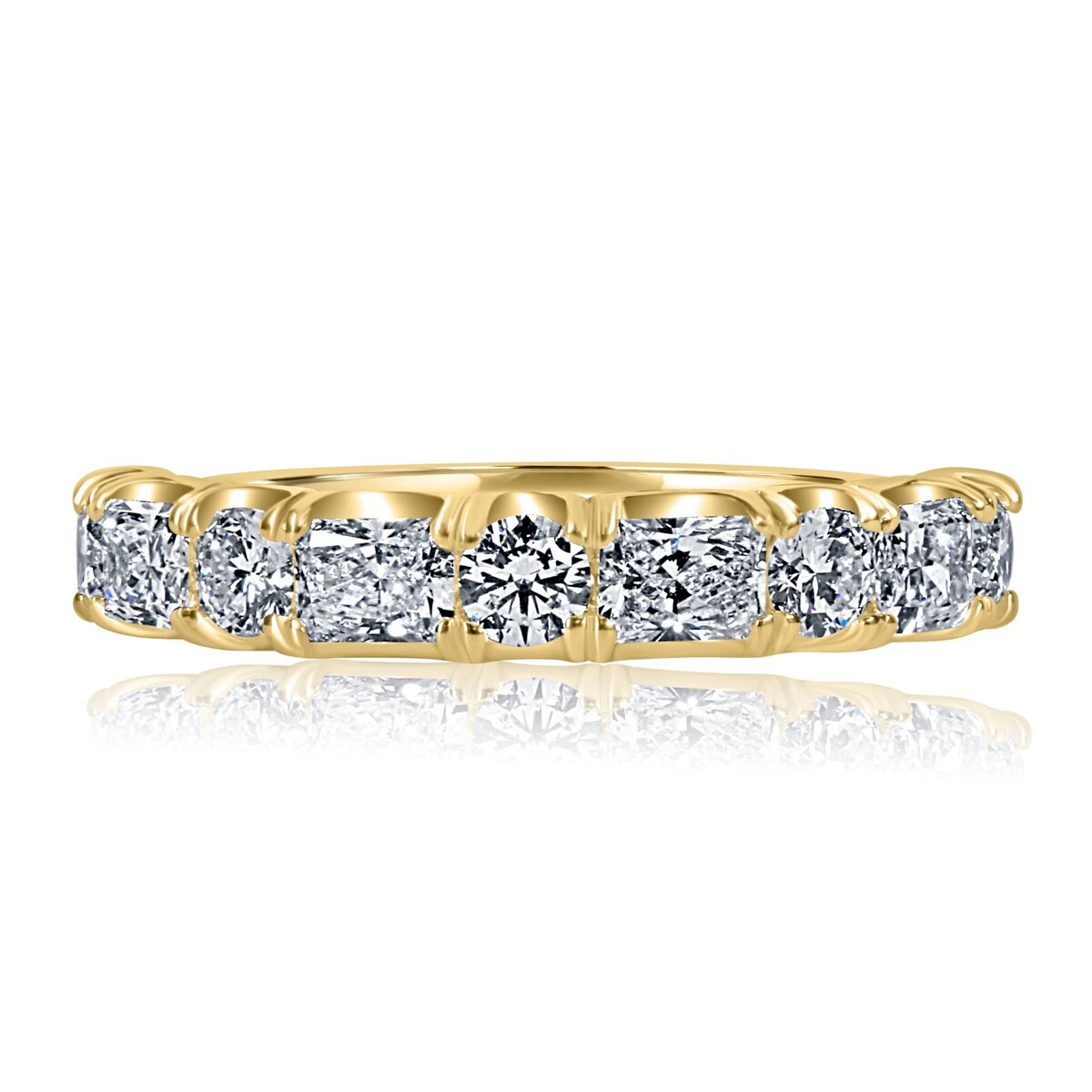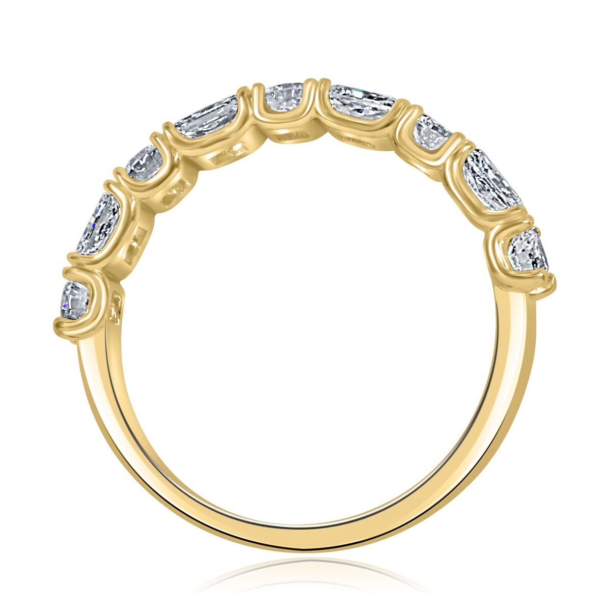 Presentation de notre alliance exquise, veritable symbole d?elegance et de romantisme. Cette superbe piece presente un design alterne unique, orne de 9 pierres totalisant 1,30 carat de diamants incolores de laboratoire de taille ronde et radiante. Fabrique avec precision en or blanc ou en or jaune 14 carats, il degage une beaute intemporelle et un charme moderne.