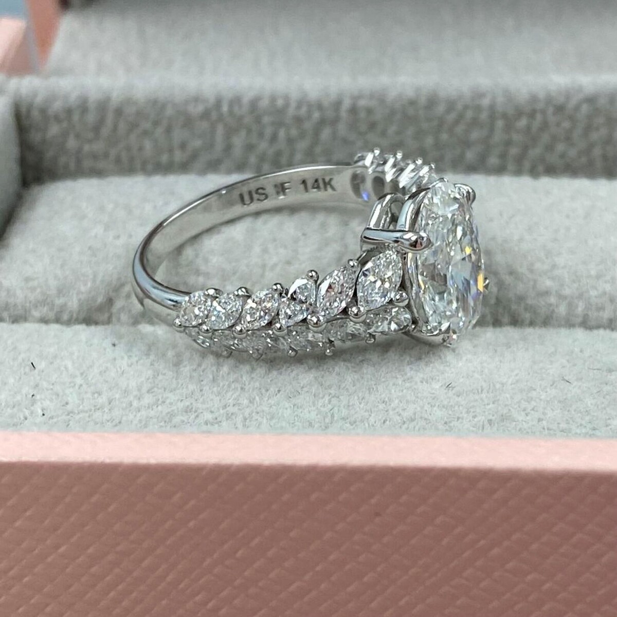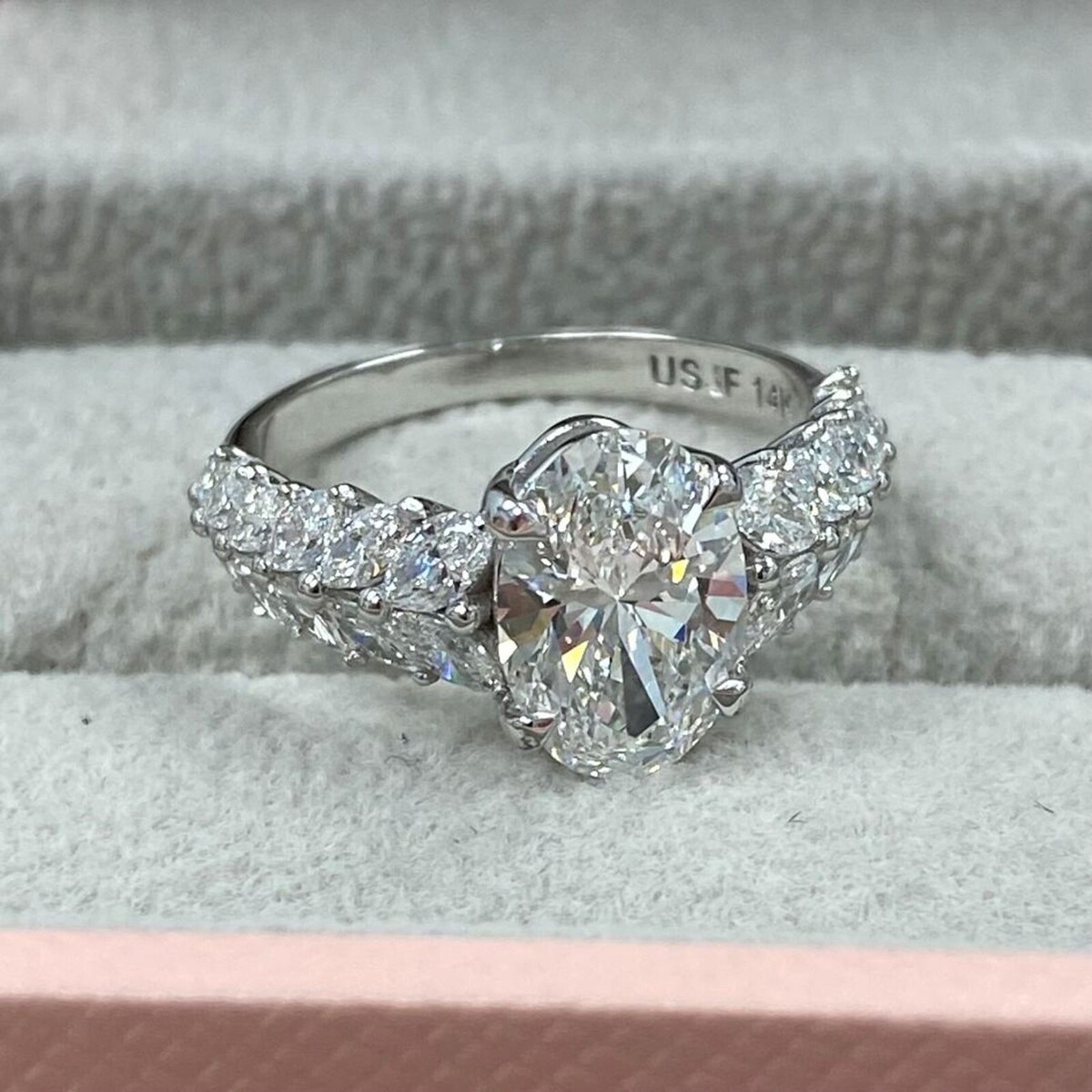 3.32 Cts (2.02) Igi Ovale Brillant Coupe Labo Grown Bague Diamant 14k or Blanc