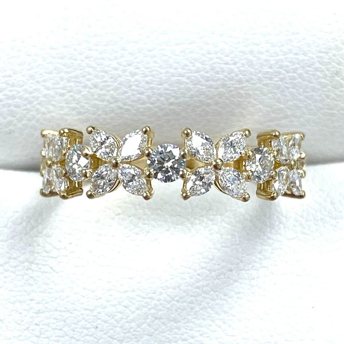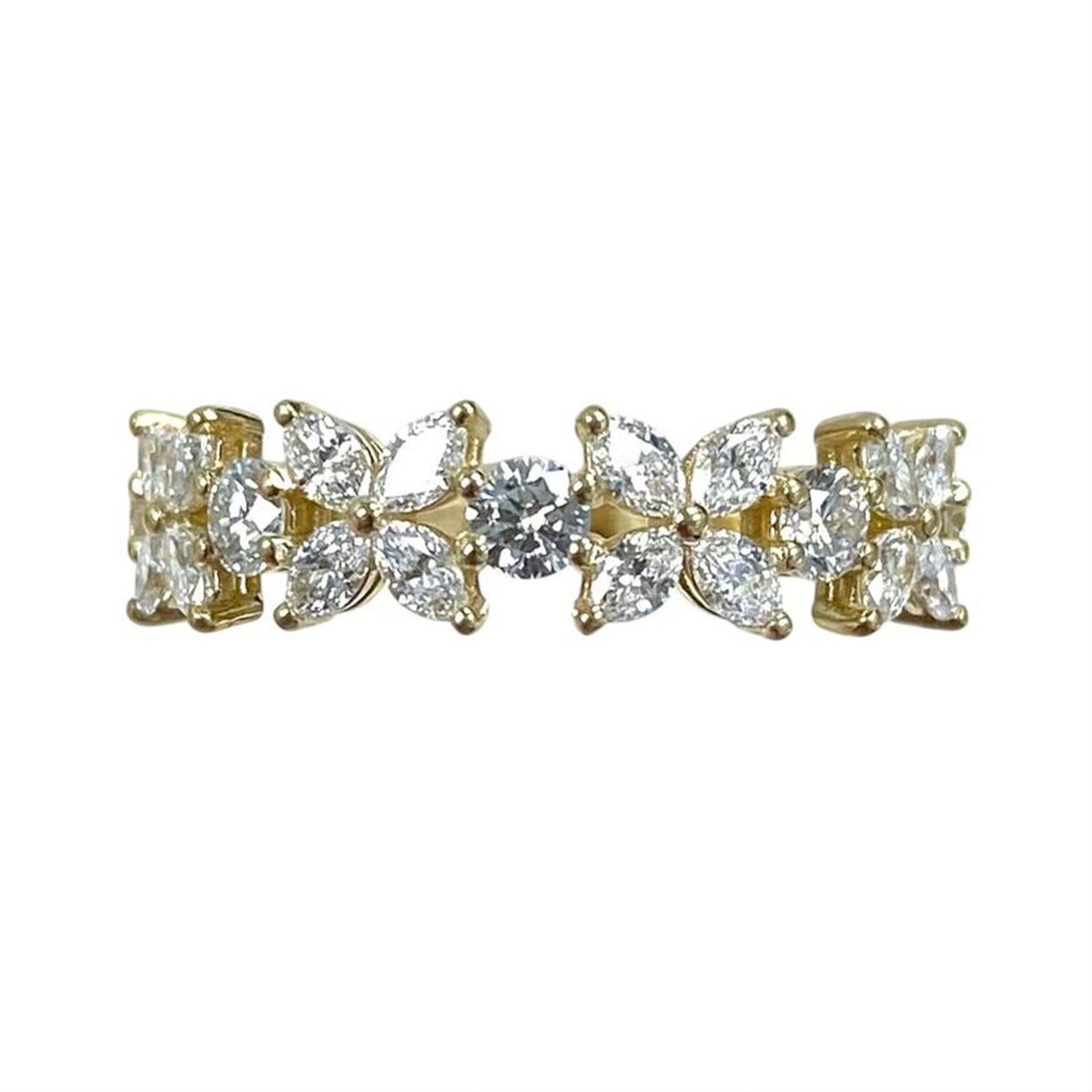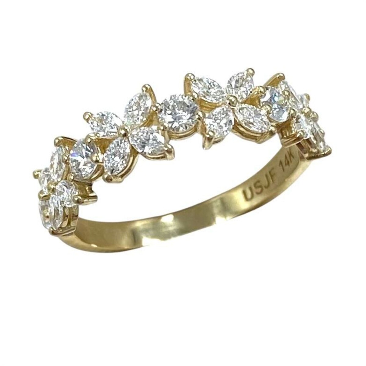 Fede nuziale alternata con diamanti marquise rotondi coltivati ??in laboratorio da 1,00 ct in oro giallo 14k