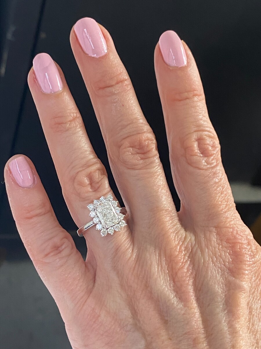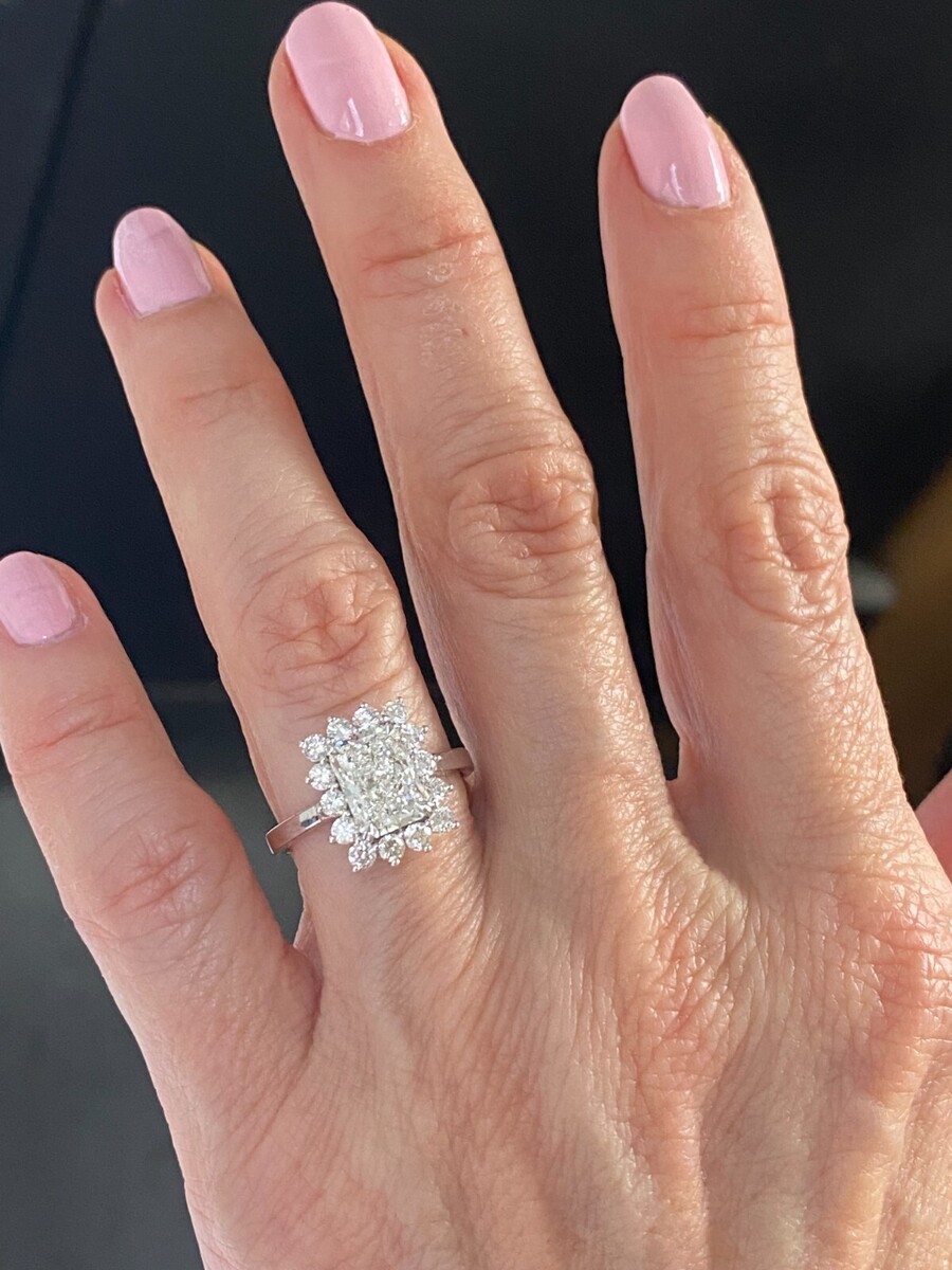 Igi 3.01 Cts Radiant Brillant Coupe E-VS1 Labo Grown Bague Diamant 14k or Blanc