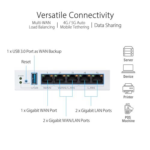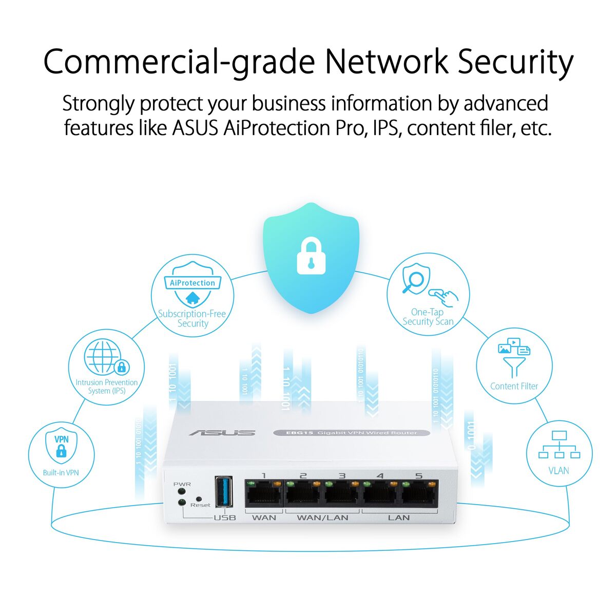 ASUS ExpertWiFi EBG15 Gigabit VPN Wired Router, up to 3 WAN ethernet Ports + 1 U