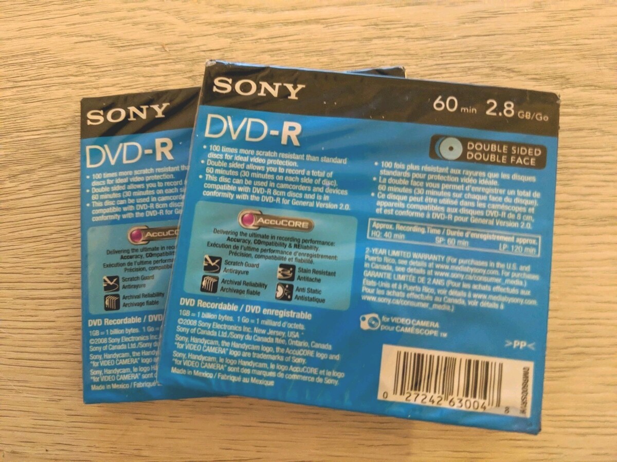 Sealed 2 Pack Sony Handycam 2.8 GB 60 Minute Double Sided Double Face DVD-R NOS