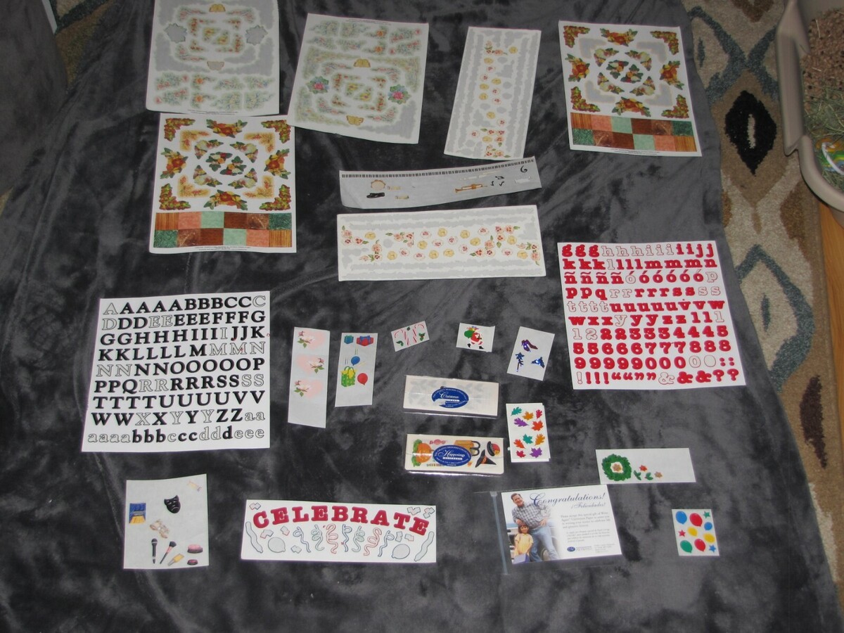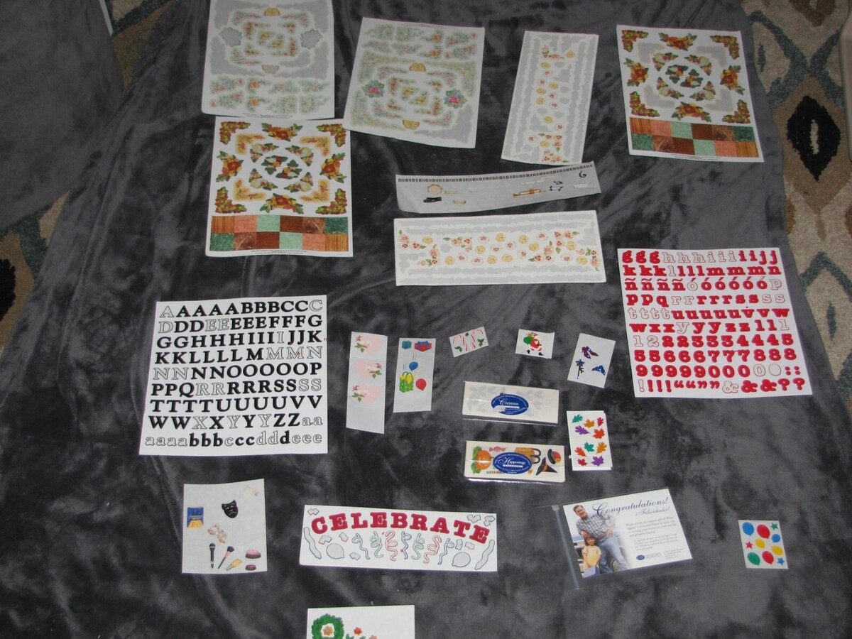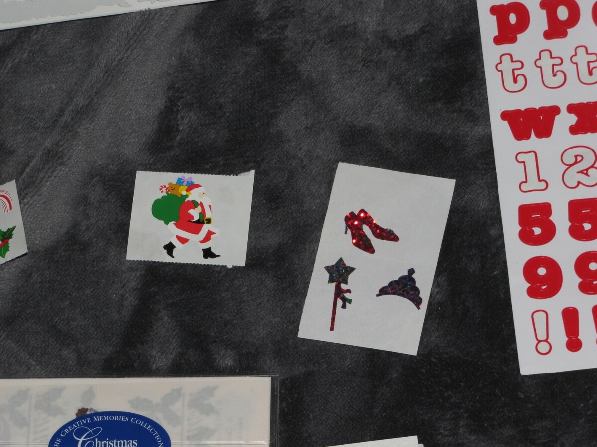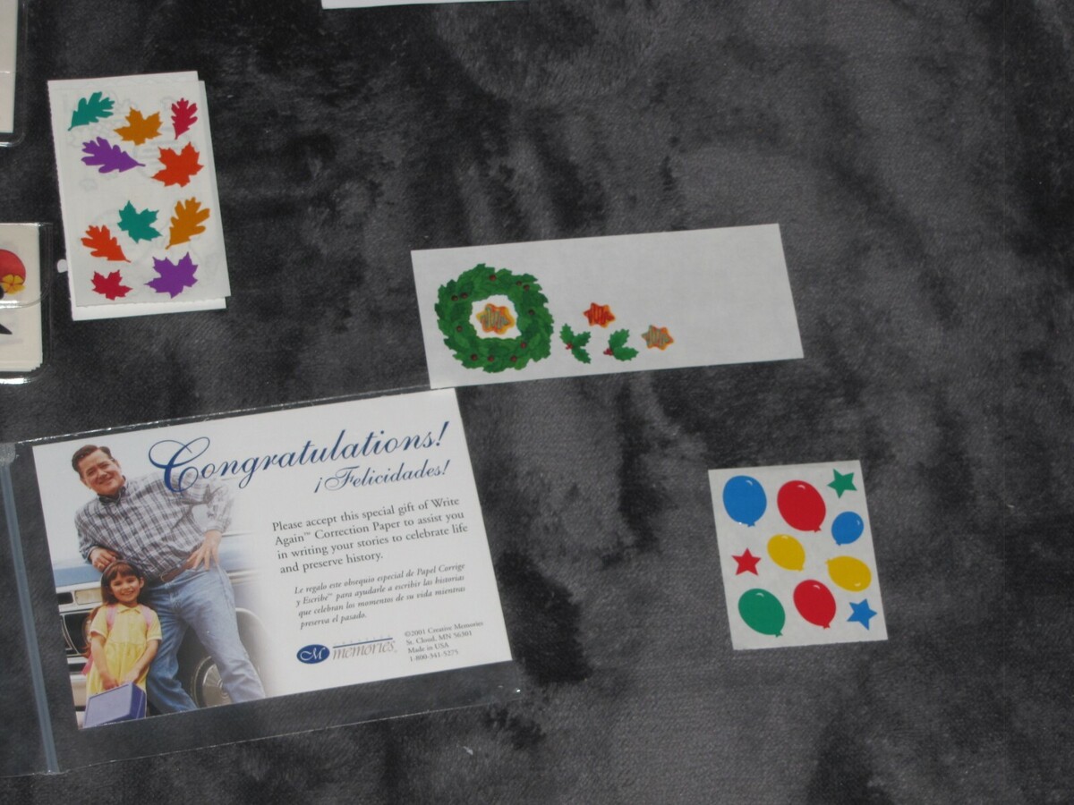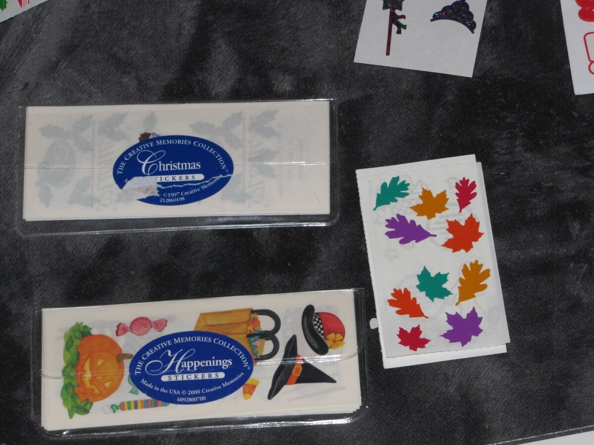 YOU GET EVERYTHING YOU SEE. AS SHOWN, SOME SHEETS ARE PARTIALLY USED SO PLEASE VIEW PHOTOS CAREFULLY. IN THE CLEAR PLASTIC PACKAGES ARE EVEN MORE HOLIDAY STICKERS THAT AREN'T SHOWN BUT ARE INCLUDED. MOST CREATIVE MEMORIES, A FEW OTHER BRANDS TOO. FROM A PET-FREE AND SMOKE-FREE WAREHOUSE.