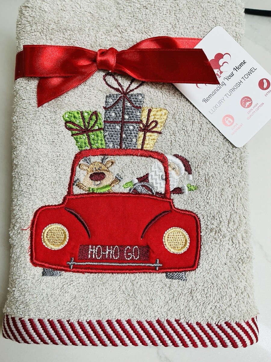 This product is a Kitchen Hand Towels set featuring three Christmas-themed HO-HO GO dish towels, each measuring 18? x 25?. Made from a blend of microfiber, nylon, and polyester, these towels are machine washable and designed for fast drying. The towels are embroidered with a festive floral pattern and have a farmhouse style, perfect for adding a touch of holiday cheer to your kitchen decor. These super soft towels are ideal for use during the Christmas season or any time of year when you want a bit of whimsy in your kitchen.