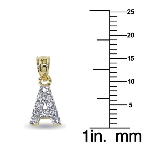 This stunning initial pendant is expertly crafted from 14-karat yellow gold, ensuring both durability and elegance. Adorning the letter 'A', the pendant features beautifully round-cut, prong-set cubic zirconia, adding a touch of sparkle that enhances its overall appeal. Measuring approximately 0.59 inches in length (15 mm) and 10 mm in width, it is designed with a lightweight construction that allows for comfortable daily wear, making it an ideal accessory for any occasion.
