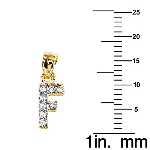 Genuine 14k Yellow Gold 0.59" Cubic Zirconia Initial Block Letter 'F' Pendant