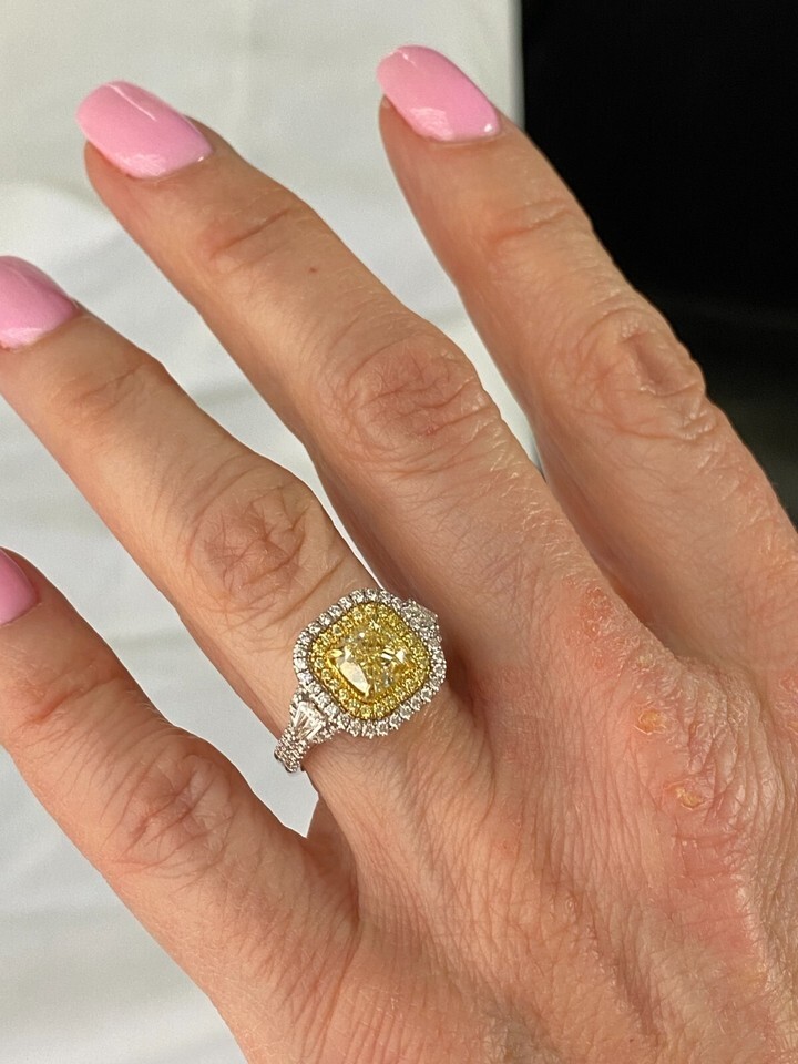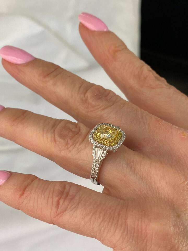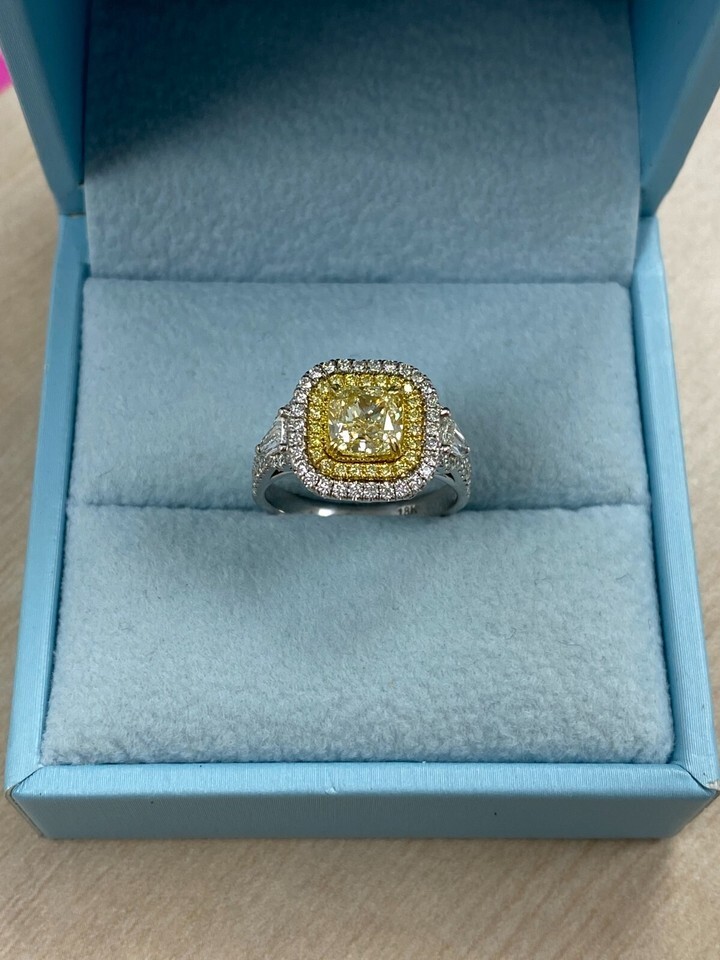 Authenticity Guarantee GIA Certified 2.43 TCW Cushion Light Yellow Diamond E...