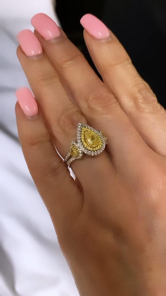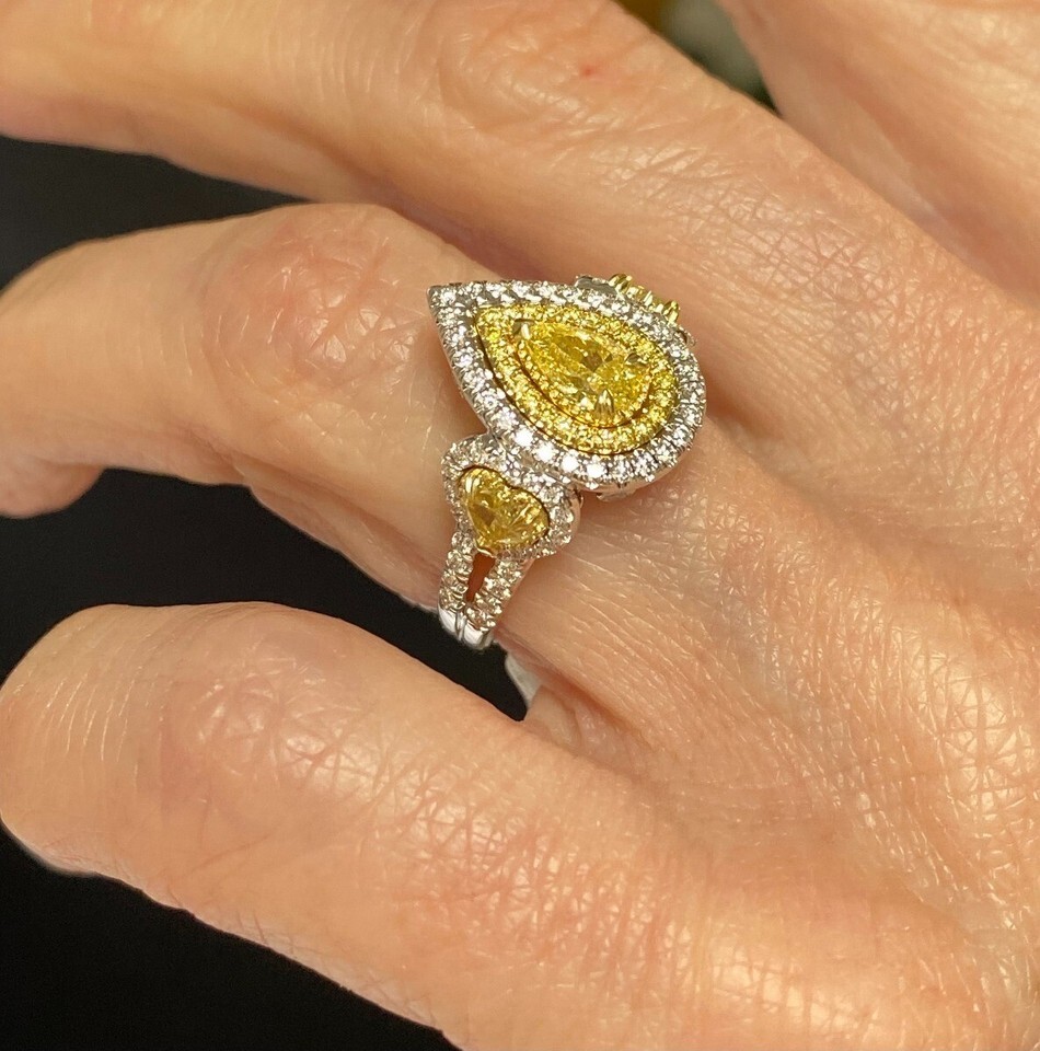 Authenticity Guarantee GIA 1.79 Ct Pear Fancy Yellow Diamond Engagement Ring...