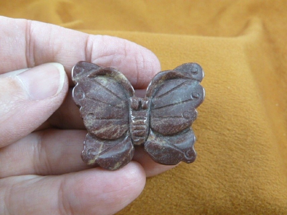 (internal #Y-BUT-556) Great carving of a BUTTERFLY measures 1-5/8" across wingspan. Good quality of natural RED RAINBOW JASPER, this gem has been hand-carved in China. New, no defect.