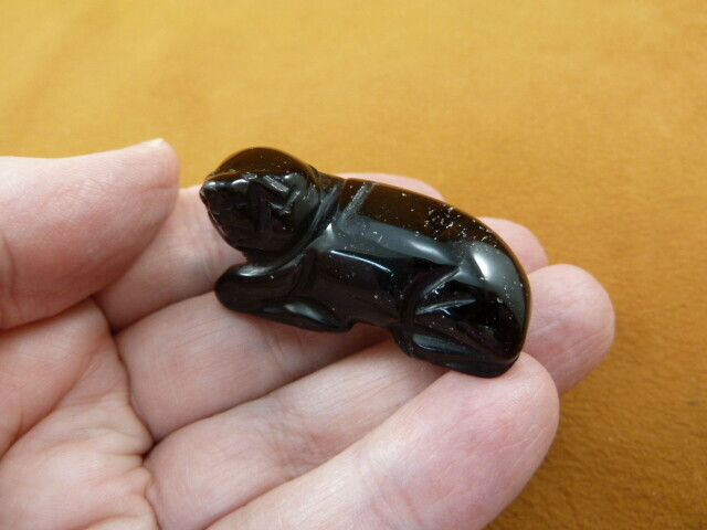 (Y-SEAL-567) little Black Onyx SEAL gemstone carving FIGURINE seals sea lion