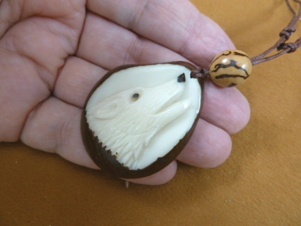 tne-wol-773b) white howling Wolf TAGUA NUT Necklace Vegetable wild dogs
