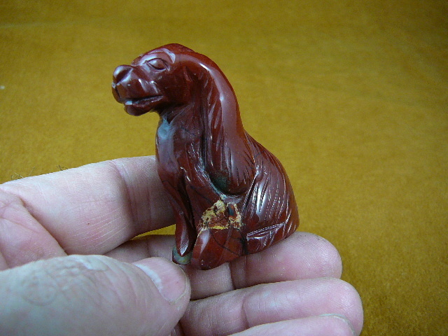 (internal #Y-DOG-CS-706) Excellent carving of a sitting COCKER SPANIEL in natural RED RAINBOW JASPER with white quartz stripes on right foot and side, carving is 2-1/4" tall, hand-carved in China. New, no defect. Great for the dog/Cocker collector!