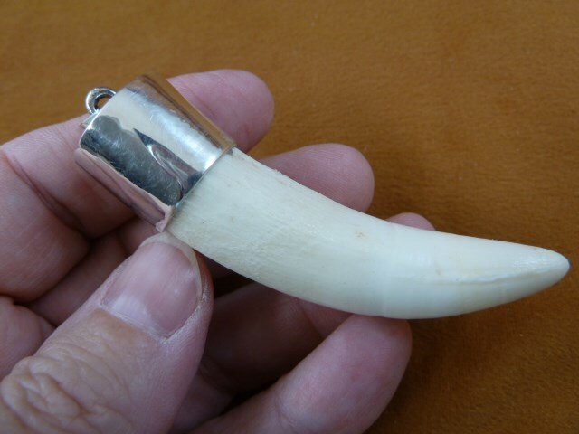(#G968-10) You are bidding on a LARGE, genuine American alligator tooth a full 3-1/8" long (measured from the top of the silver cap with a flexible ruler to the tip of the gator tooth), capped in a LARGE high quality .925 sterling SILVER CAP, with a raised image of an alligator on the cap, as a pendant. Pendant loop measures 1/4" diameter inside.