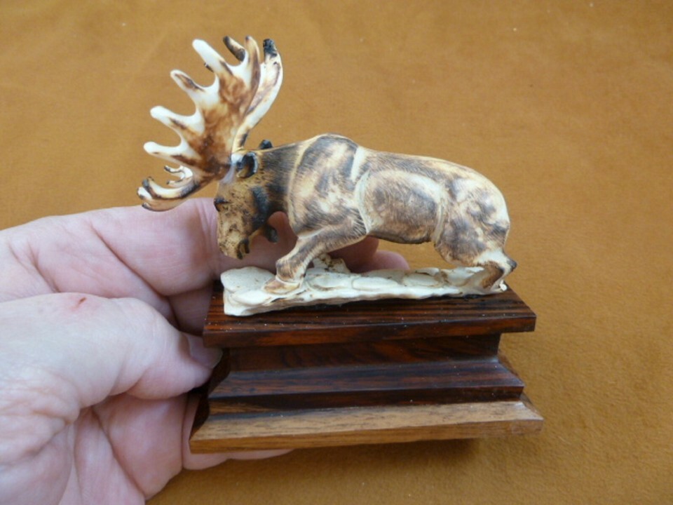 moose-24 brown Moose Elk bull running shed ANTLER figurine Bali detailed carving