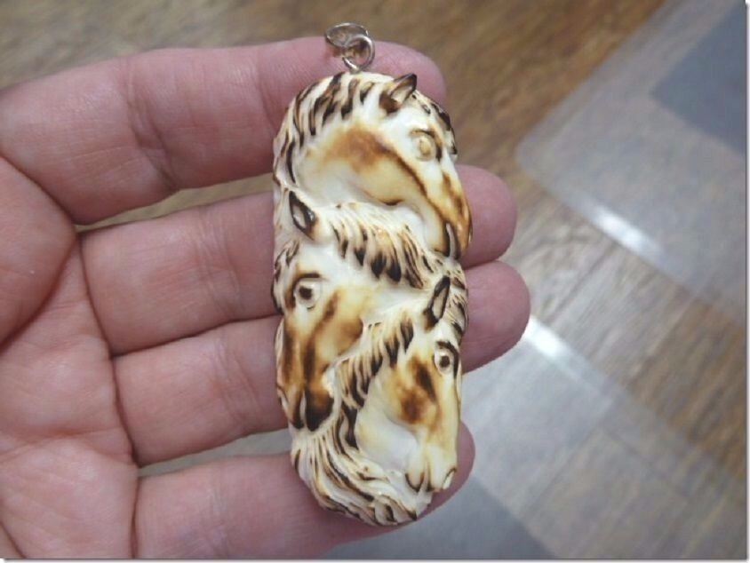 (j-hors-2) wild HORSE three HEAD PENDANT heads HORSES water buffalo material