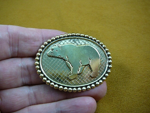 (B-bear-375) walking Grizzly bear oval textured dot trim brass pin pendant bears