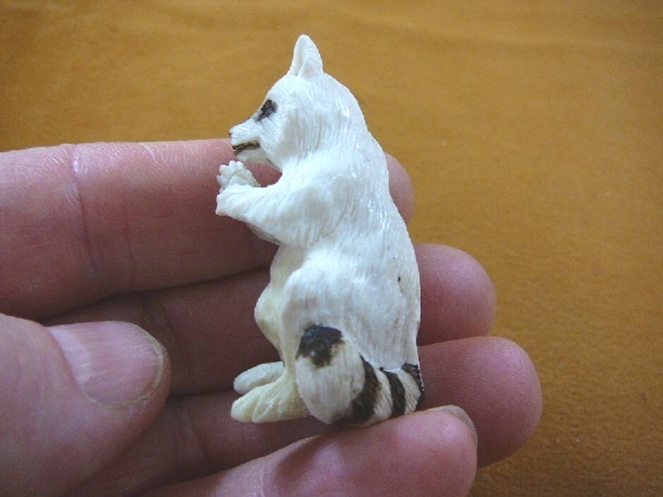 (Rac-2) white Raccoon sitting of shed ANTLER figurine Bali detailed carving coon