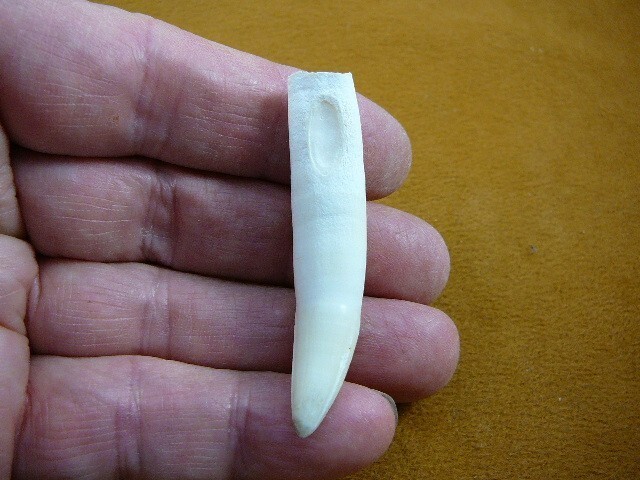 (Internal #G374-18) You are bidding on One 2-1/2" natural, genuine American Alligator tooth (Alligator Mississipiensis) from a Louisiana gator farm. Tooth is measured with a flexible ruler from the tip to the highest part of the top. Tooth is without flaws.