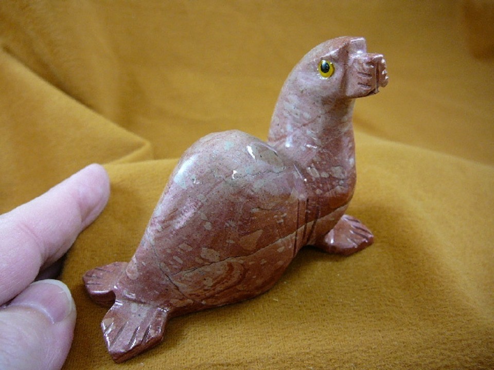 (Internal #Y-SEAL-403) Great carving of a LARGE SEAL, is 2-7/8" long carved in Peru of native soapstone (RED RUST WHITE TAN marbled color is natural). New, no defects, this is exactly the item you would receive.