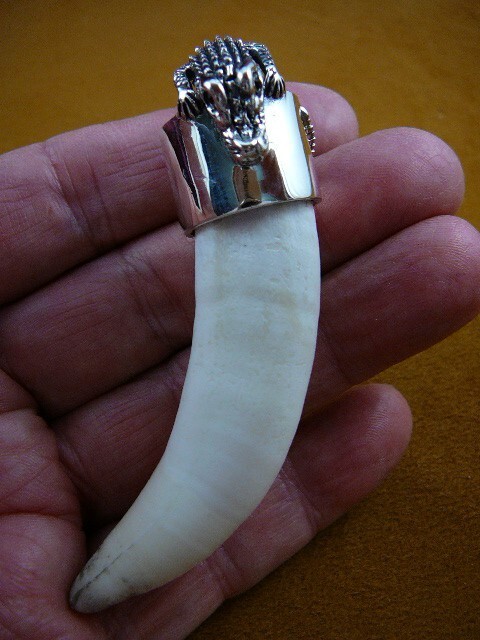(G963-11-1) Extra LARGE 3-3/4" GATOR Alligator Tooth SILVER CAP gators Pendant
