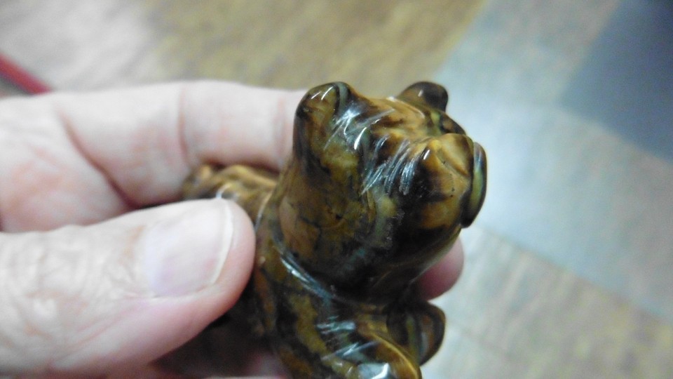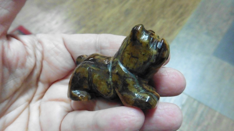 (internal #Y-DOG-EB-713) You are bidding on one new, flawless carving of a BULLDOG, 2-1/8" long, carved in CHINA of polished, natural BROWN TIGER'S EYE gemstone. Excellent detail and quality. Great for the bulldog or dog lover!