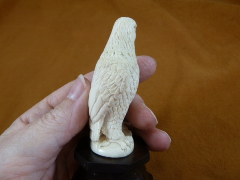 (EAGLE-2) white Bald Eagle perched shed ANTLER figurine Bali detailed carving