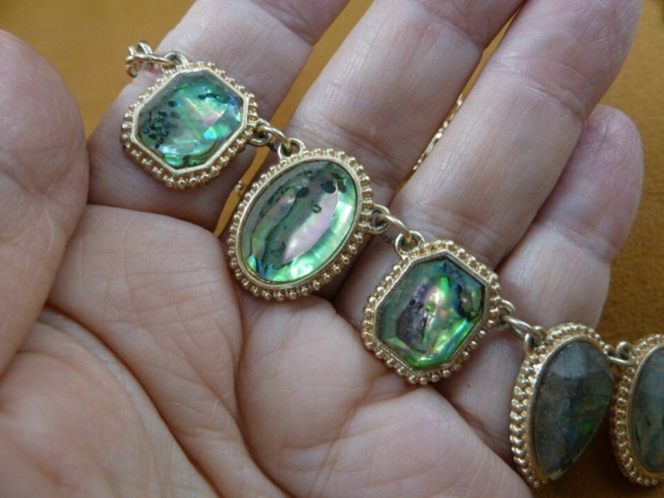 (vn-18) vintage Paua shell glass gold tone chain necklace costume jewelry 40's