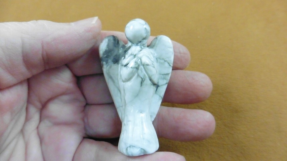 (Y-ANG-707) White Howlite Guardian Angel Gemstone gem carving I love my angels
