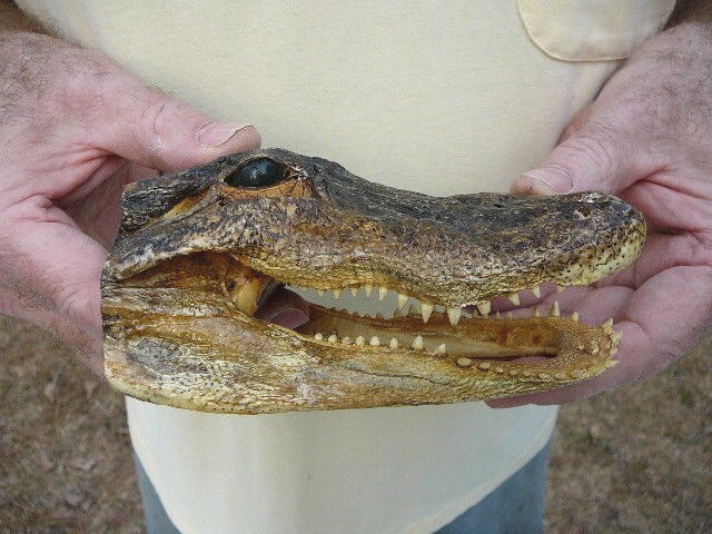Glenn began to notice these deformed heads as part of his orders for gator heads from Louisiana, and began to request them to set aside the deformed heads to send to him, which they did! That is how we acquired so many, realizing how large a problem the pollution really was.