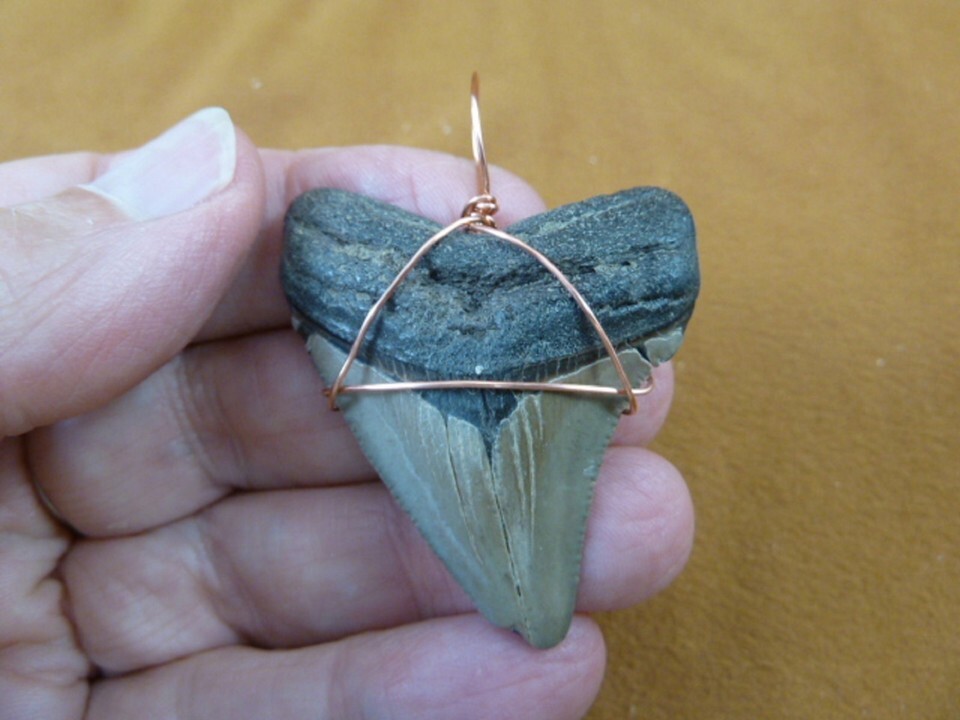 (S241-54) big 1-7/8" Fossil MEGALODON Shark Tooth copper wired pendant JEWELRY