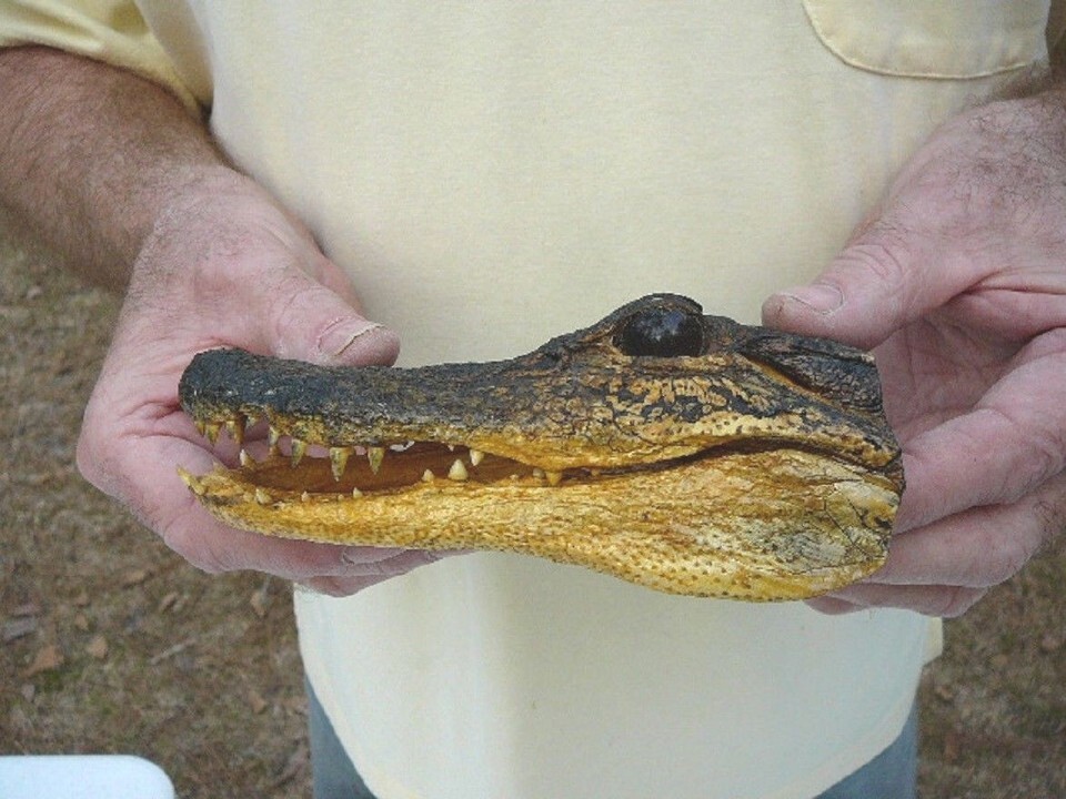 Glenn began to notice these deformed heads as part of his orders for gator heads from Louisiana, and began to request them to set aside the deformed heads to send to him, which they did! That is how we acquired so many, realizing how large a problem the pollution really was.