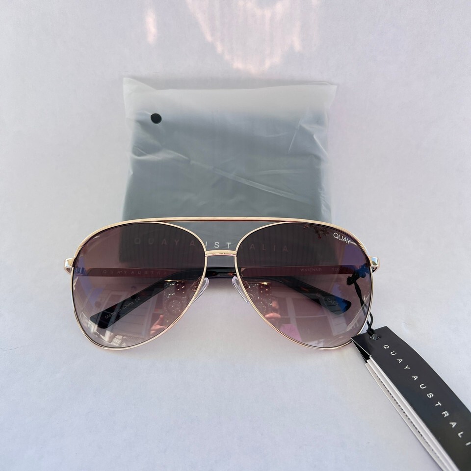 New Quay Vivienne Oversized Aviator Sunglasses Gold Brown Rare
