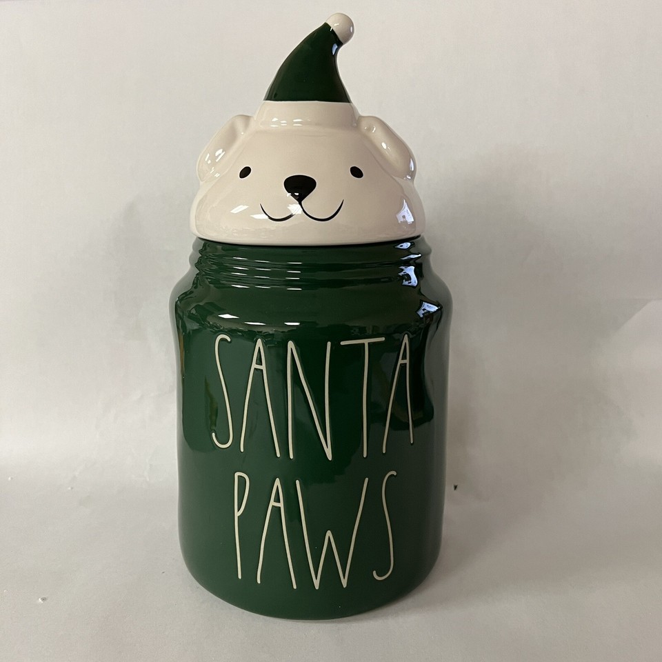Rae Dunn Christmas Santa Paws Dog Treat Canister Green.
