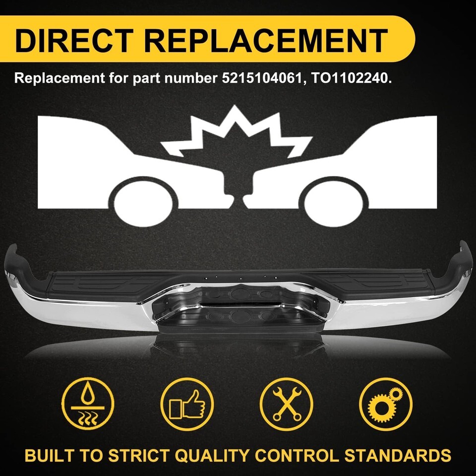 Rear Bumper Assembly Compatible With 2005-2015 Toyota Tacoma Pickup Chrome Steel