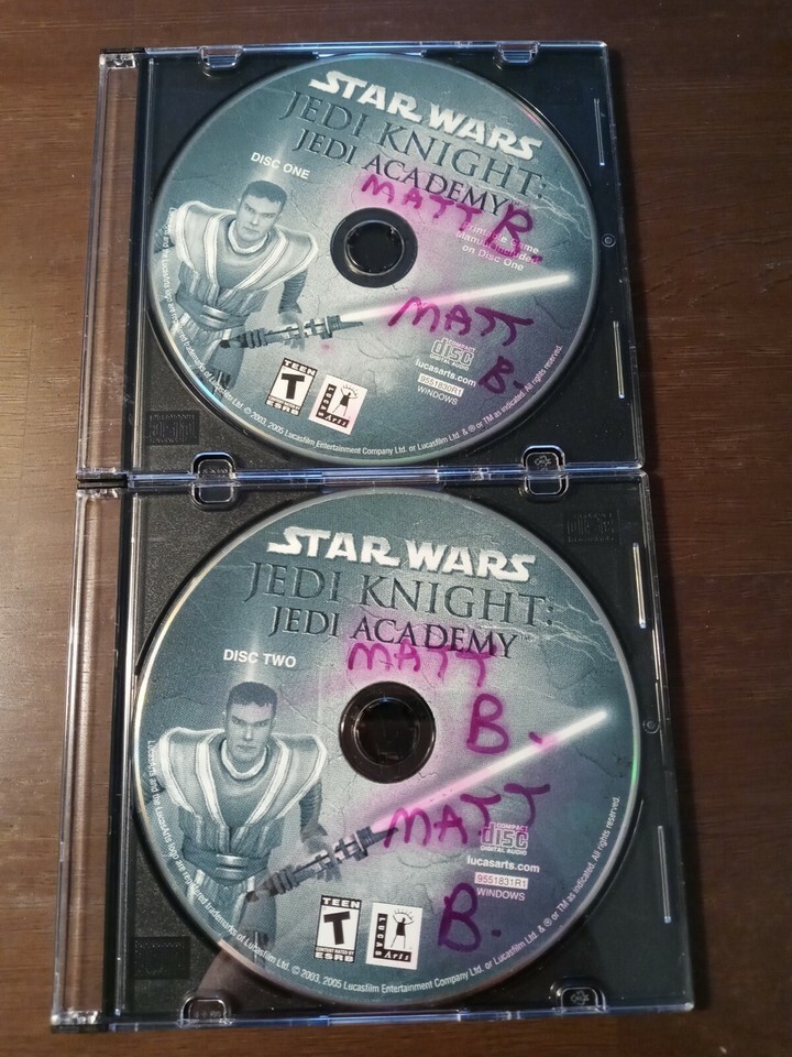 STAR WARS: JEDI KNIGHT - JEDI ACADEMY 2-DISC PC CD-ROM GAME FOR WIN 98/2K/XP. Condition is "Very Good". Shipped with USPS First Class.Very Good Condition ; Condition is Used-See Pictures Attached For Exact Condition . Shipped with USPS First Class Mail . You Will Receive 1 ea PC CD ROM as shown in pictures attached. SHIPS N 24 HOURS Packed By Our Award Winning Packaging And Shipping Department Long Time E-commerce Seller For Over 20 Years LIMITED AVAILABILITY THANK YOU FOR SUPPORTING OUR FAMILY OWNED USA BUSINESS Collectible Very Good Condition PC CD ROM (Has Wear See Pictures Attached For Exact Description) - CD's Are Tested And Cleaned With Our Professional CD Cleaning Equipment Before Shipped - Ships Immediately - Great Product at a Unbelievable Price - Your Chance To Own This Collectible PC CD ROM Before Its Gone. Inventory Box #6219