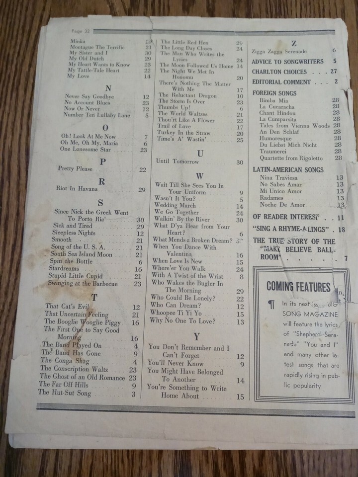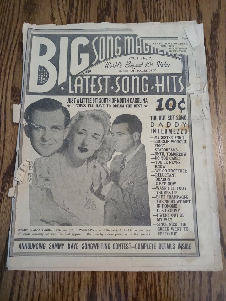 Big Song Magazine, Latest Song Hits Volume 1 No 7 September 1941. Condition is "Good". Shipped with USPS First Class.